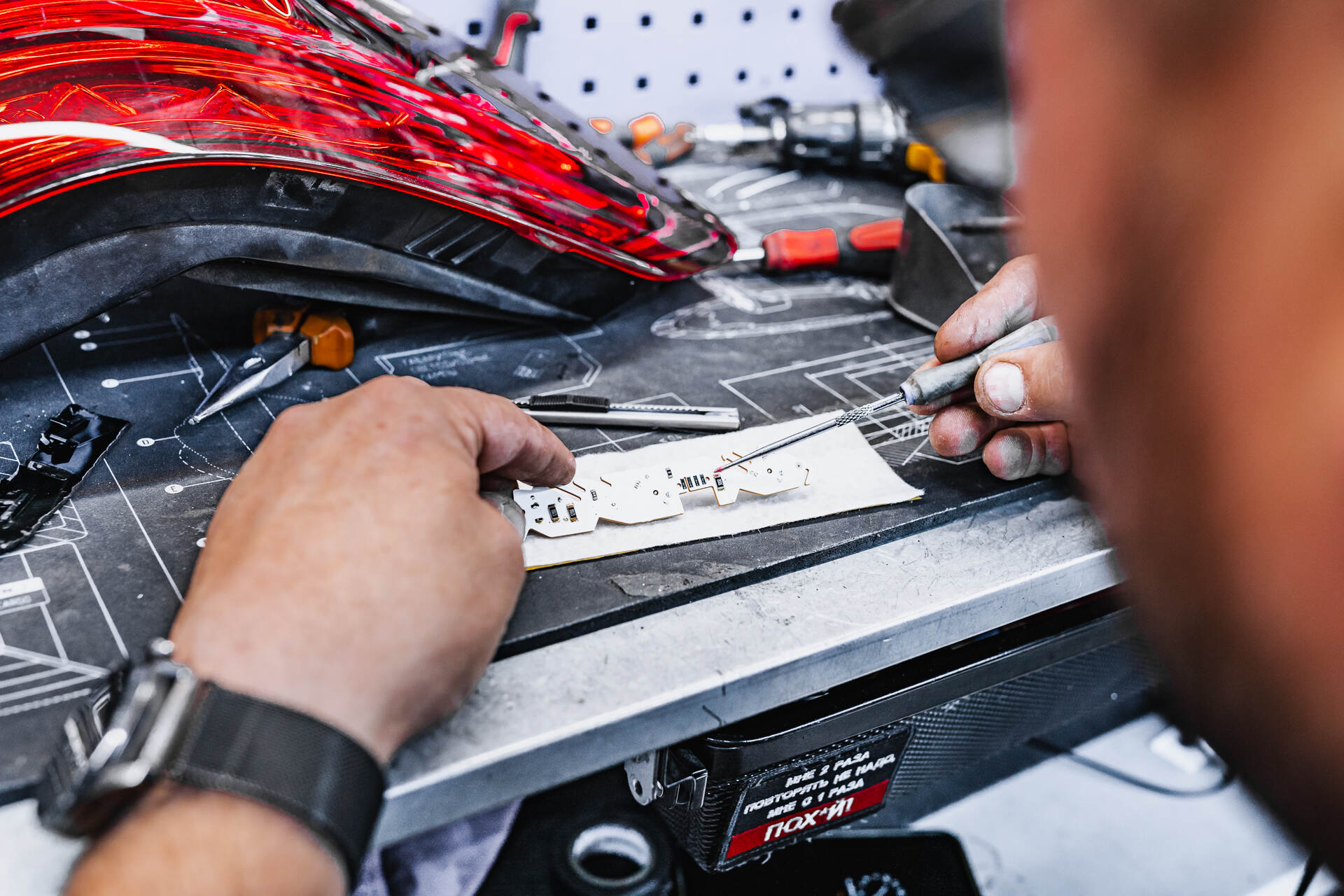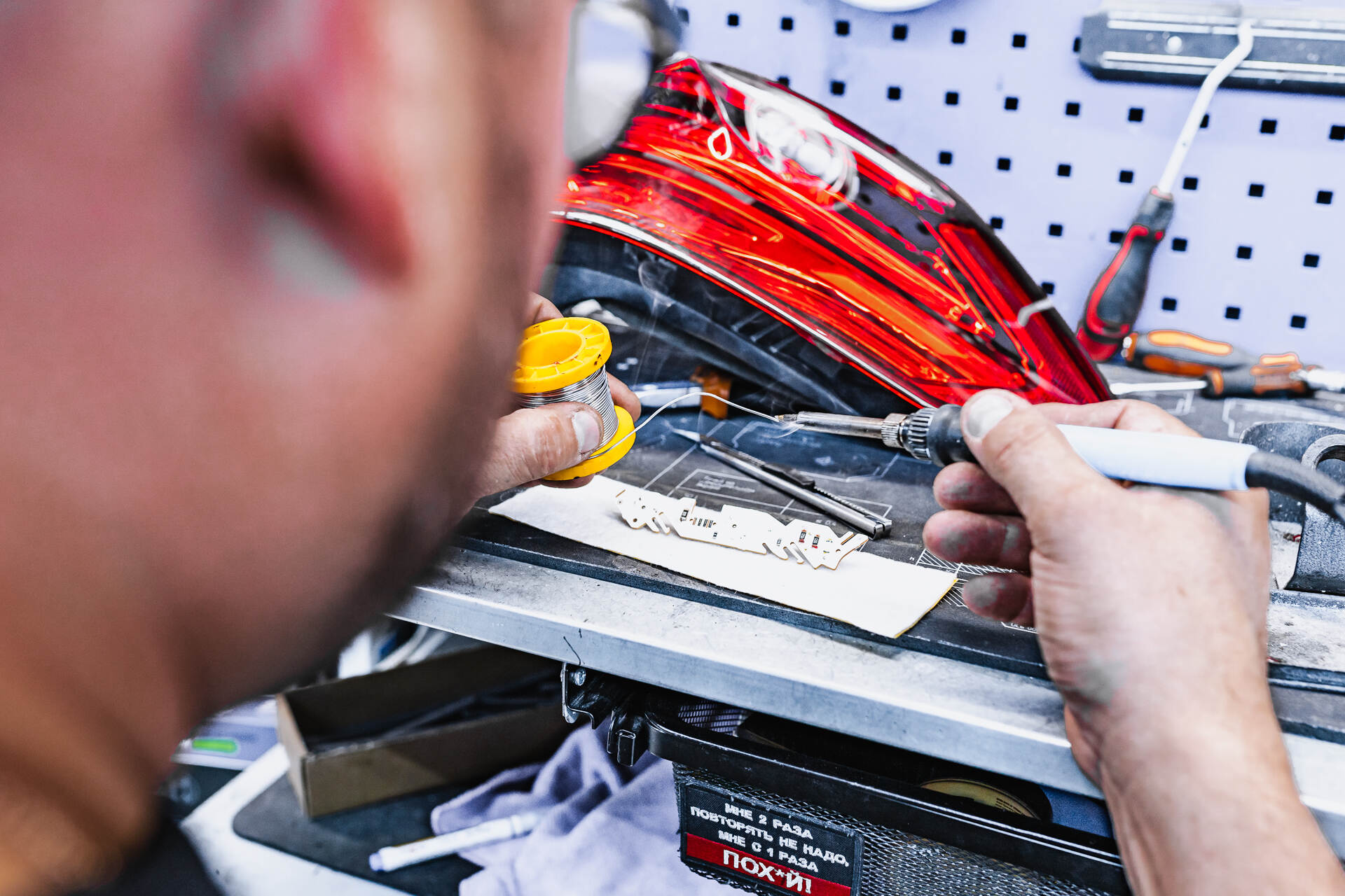 Разбираем фонарь после демонтажа. Устанавливаем новый контроллер в задний фонарь Мерседеса 212.Нашими специалистами разработана эффективная методика восстановления задних фонарей Mercedes W212. Технология включает демонтаж и разборку фонаря с последующей установкой усовершенствованного контроллера тока, который обеспечивает стабильную работу светотехники на протяжении длительного срока. Особенностью решения является индивидуальная адаптация контроллера под параметры конкретного автомобиля. Данное устройство производится непосредственно в нашей мастерской и не доступно в других сервисных центрах, что гарантирует уникальность и эффективность выполненных доработок.