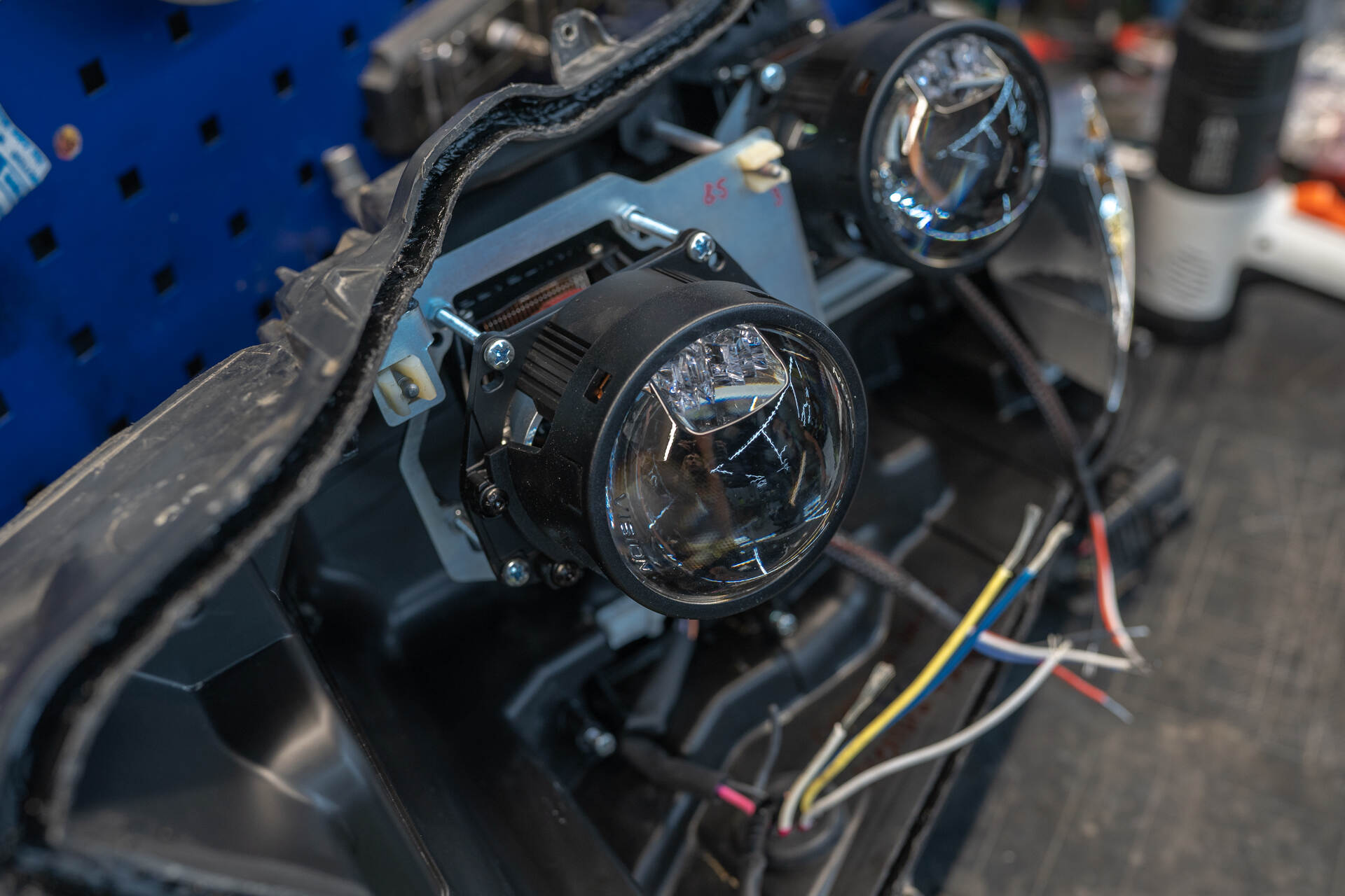 Разбираем фары и удаляем их них старые линзы.Светодиодные линзы Vision Avantgarde Plus относятся к премиальному сегменту, сочетая в себе превосходные световые характеристики и высокую надежность. Многолетний опыт работы с брендом Vision подтверждает достойное качество сборки их продукции: процент брака минимален, что позволяет нам уверенно предоставлять трехлетнюю гарантию на эти линзы. По уровню яркости представленные LED-линзы значительно превосходят классический галоген и способны на равных конкурировать по мощности светового потока даже со штатной ксеноновой оптикой, обеспечивая водителю исключительную видимость на дороге.