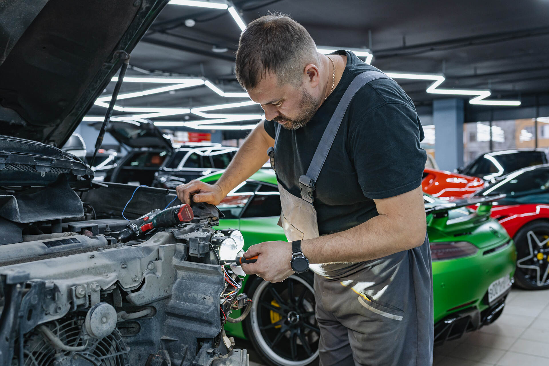 Примеряем фары с линзами до герметизации на автомобиле, а также собираем их с новыми стеклами. Бронируем стекла фар и регулируем головной свет.Для максимально эффективного результата было решено заменить стекла на обоих фарах вместе с установкой линз Vision Avantgarde Plus. После монтажа новых модулей фары герметизируются надежным бутиловым герметиком, а автомобиль проходит финальную сборку. Завершающим этапом становится высокоточная настройка светового потока по прибору, что позволяет добиться безупречно ровной светотеневой границы.