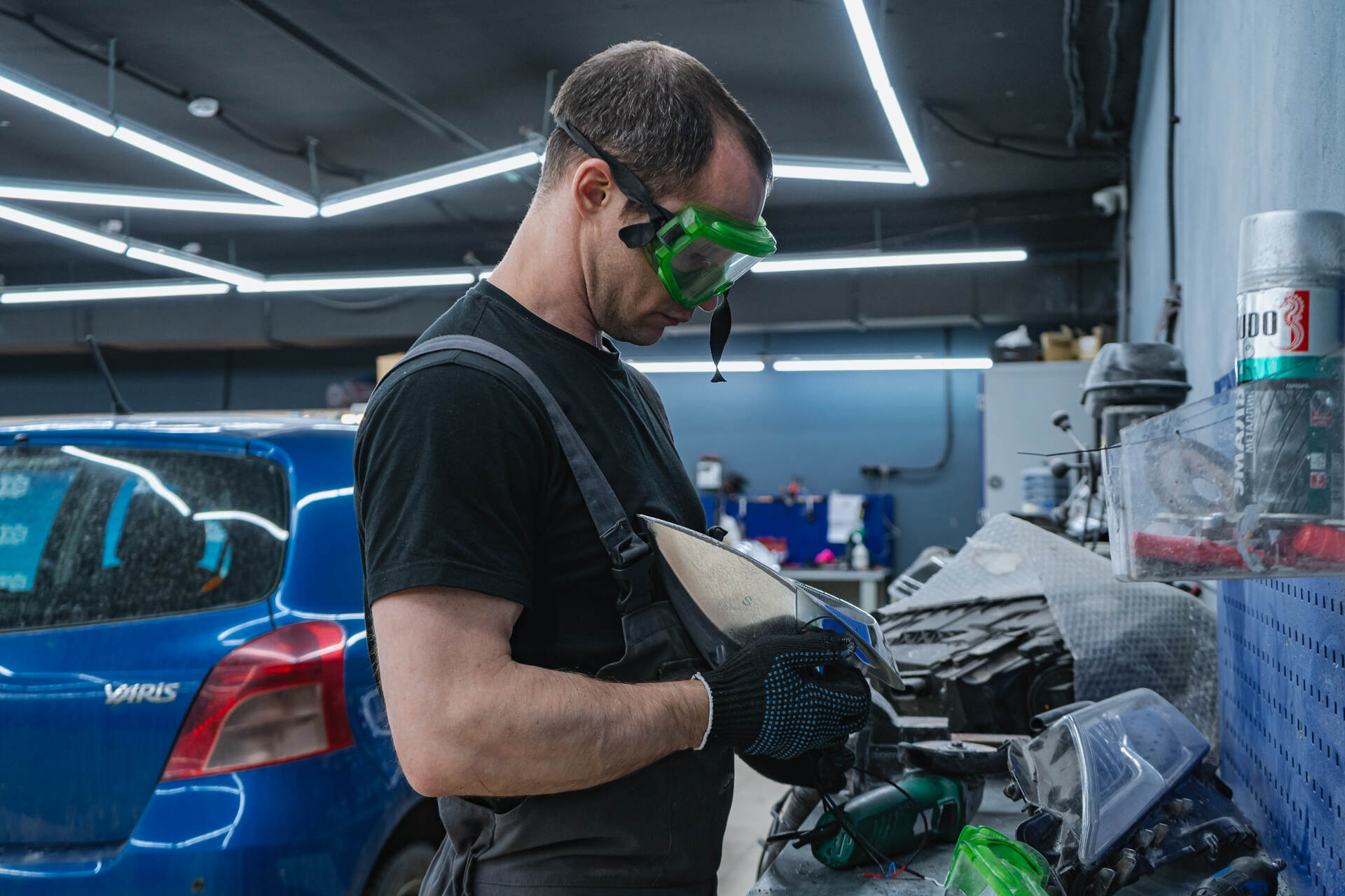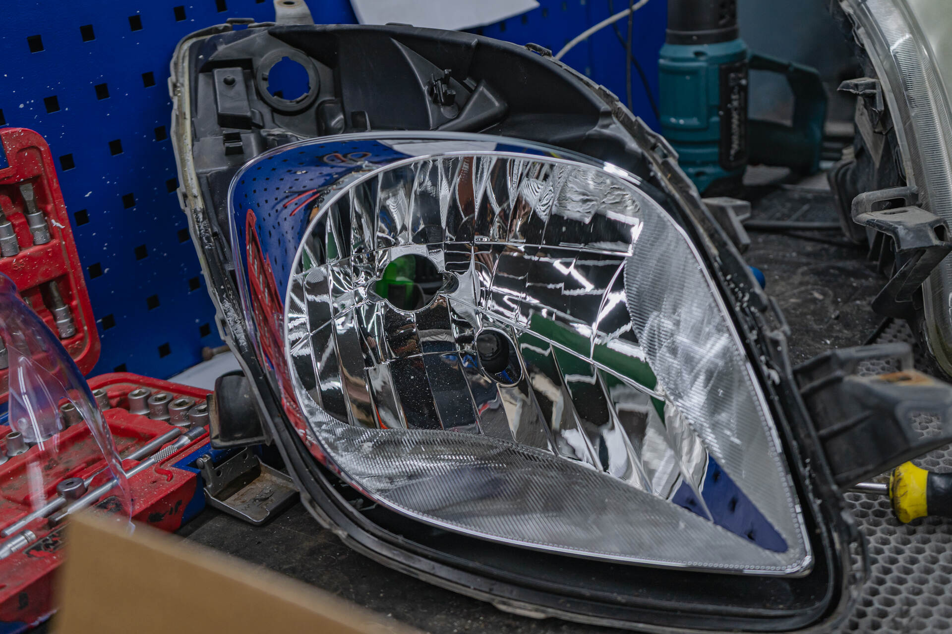Герметизируем фары с новыми стеклами и собираем автомобиль. Регулировка нового автосвета.Установка линз на Тойота Ярис начинается с демонтажа фар, далее мы отправляем фары на разборку. Следующим шагом извлекаем из фар отражатели, в которых необходимо подготовить посадочное место пилой, куда с помощью переходных рамок монтируются билинзы Technik Division Pro 3". Перед финальной сборкой фары возвращаются на автомобиль для точной калибровки светового потока и примерки декоративных масок (бленд). Завершающим этапом становится повторный демонтаж и герметизация фар.