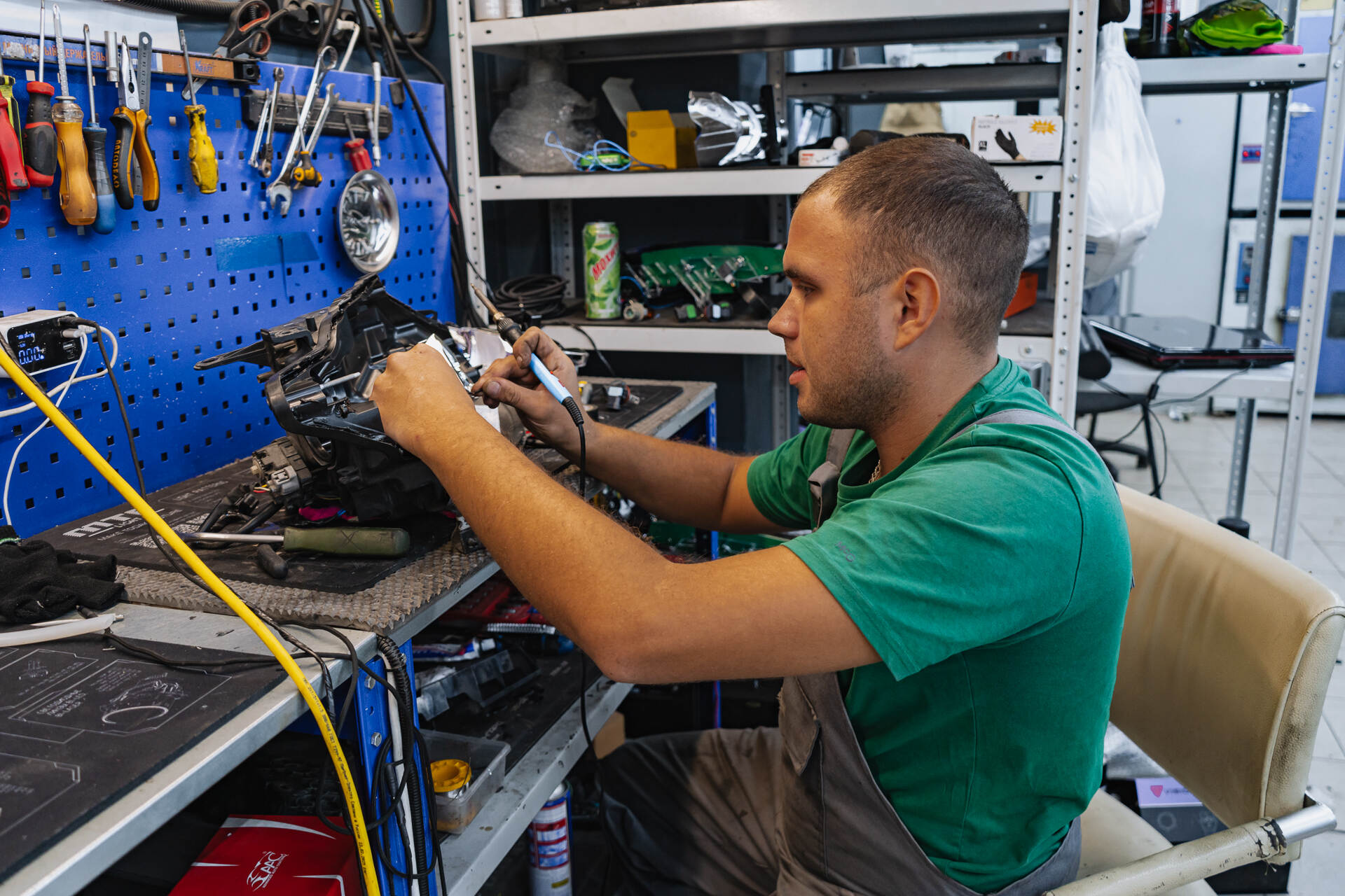Устанавливаем в отражатели светодиодные линзы.Установка светодиодных линз на Ниссан Х-трейл Т32 начинается с демонтажа бампера и извлечения обеих фар, которые затем помещаются в промышленную печь для разгерметизации. После вскрытия фар мы удаляем штатные рефлекторные модули и аккуратно выпиливаем в отражателях отверстия для установки линз Vision Avantgarde, фиксирующихся на специальных шпильках. Эта процедура для нас отработана до мелочей, поскольку мы многократно выполняли подобные работы на данной модели авто, поэтому весь процесс занял стандартный рабочий день — автомобиль поступил в сервис утром, а вечером уже был передан владельцу с обновленным автосветом.
