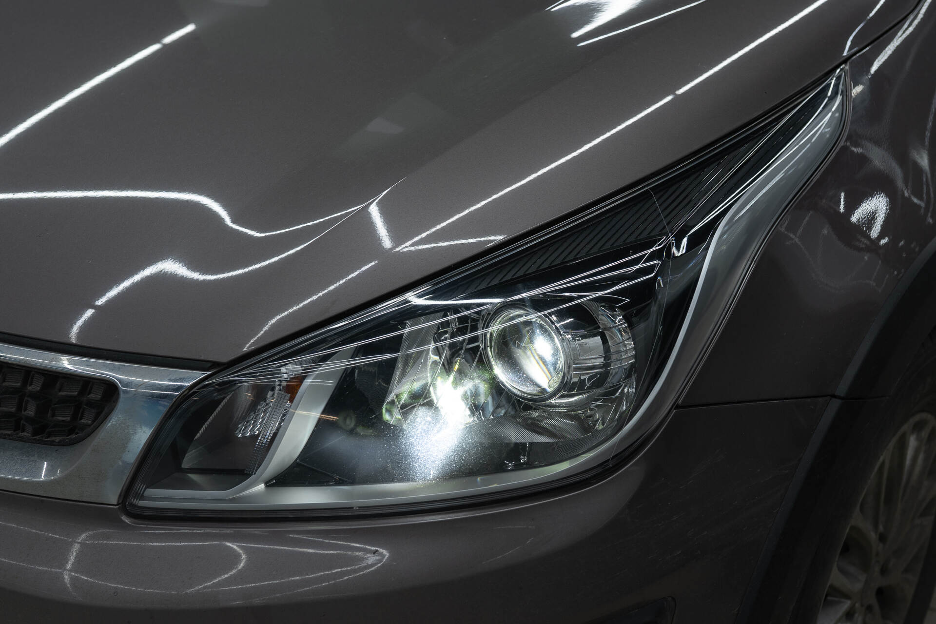 Собираем автомобиль, регулируем и полируем фары.Установка линз в фары КИА Рио занимает один рабочий день: мы принимаем автомобиль утром и возвращаем его владельцу к вечеру с обновленной оптикой. Процесс начинается с демонтажа бампера и прогрева фар в промышленной печи для размягчения герметика и последующего разбора. Для интеграции линз MTF-Light Night Assistant Progressive 2.0 в отражателях подготавливаются специальные отверстия, после чего модули надежно фиксируются на шпильках. До финальной герметизации фары обязательно возвращаются на автомобиль для предварительной регулировки светового потока и примерки декоративных масок. Только после тщательной регулировки света мы приступаем к окончательной сборке и установке всех компонентов обратно на вто. Из-за неудовлетворительного состояния стекол мы начали работу с их глубокой очистки изнутри щелочным составом для удаления многолетних загрязнений. Дополнительно мы отполировали стекла фар с внешней стороны, добившись идеального блеска. Такая комплексная обработка позволила вернуть фарам безупречную прозрачность, что наглядно подтверждают финальные фотографии проекта.