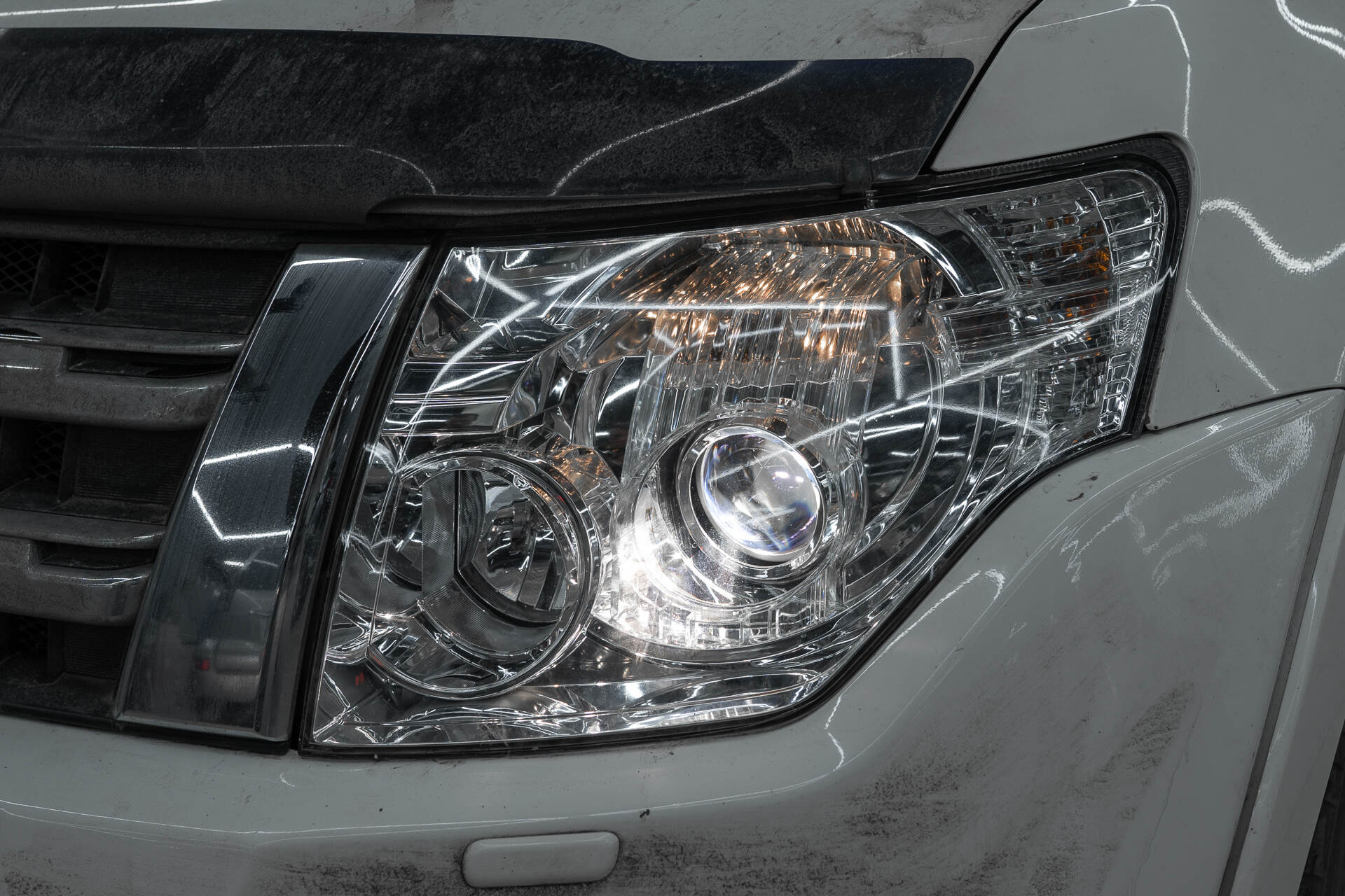 Вид фары и автомобиля в момент обращения.Для восстановления головного освещения Mitsubishi Pajero 4 используется оригинальный блок Mitsubishi W3T23371, W3T21571, который демонстрирует исключительную надежность. Высокое качество этого устройства подтверждается нашей официальной гарантией, распространяющейся как на само оборудование, так и на процедуру его установки. Выбор в пользу сертифицированного оригинала позволяет на долгие годы забыть о проблемах с автосветом, поскольку такие компоненты рассчитаны на многолетнюю бесперебойную эксплуатацию без нареканий. Опять же, если исключить их залив водой, что обычно происходит при запотевании фар.