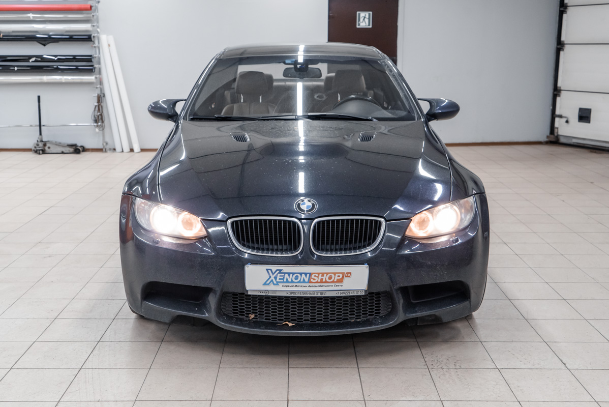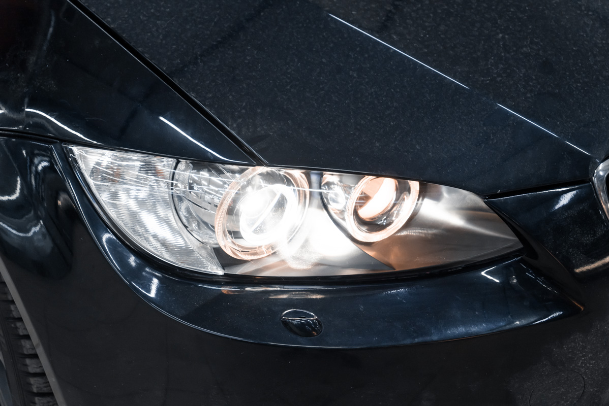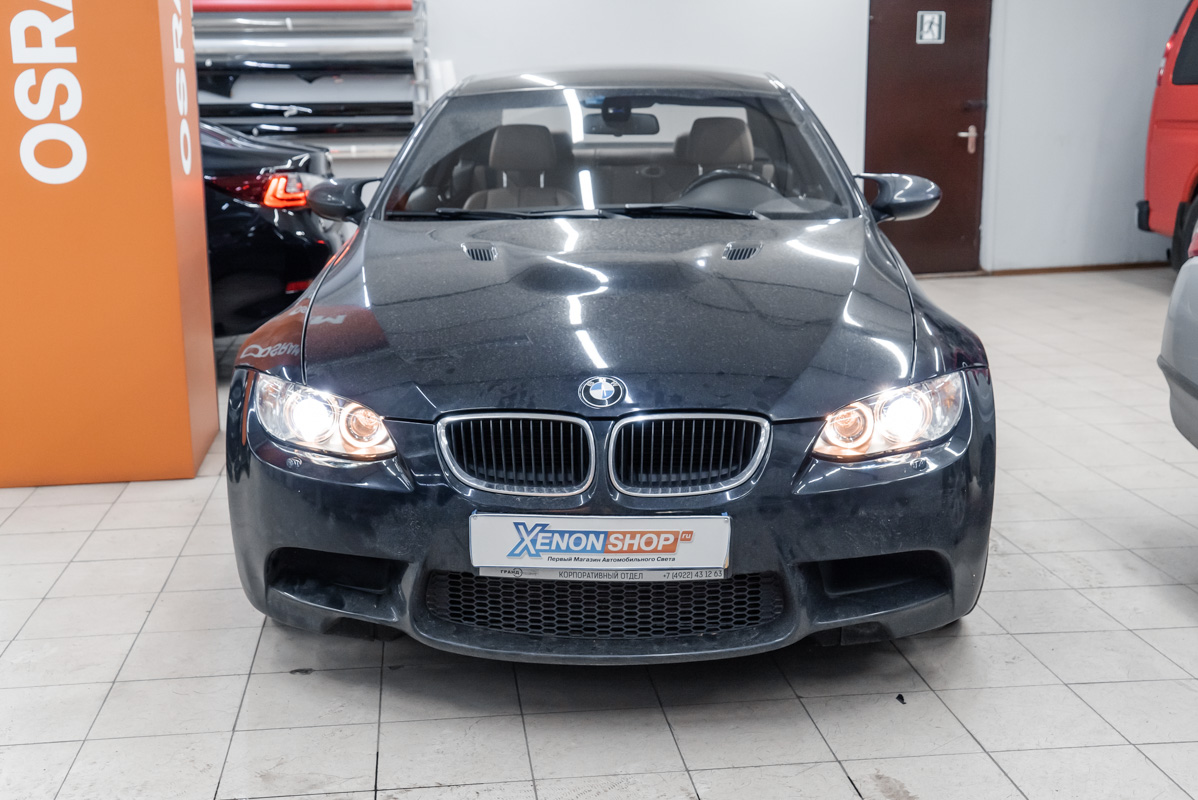 Итоговая светотеневая граница, свет и вид фар.Завершив монтаж модулей XS-Light 3R Premium в фары, мы устанавливаем новые стекла на свежий герметик и собираем автомобиль. Финальный этап включает точную настройку оптики по прибору для формирования безупречной светотеневой границы. Как демонстрируют итоговые снимки, фары BMW M3 E92 (2011) обрели мощное свечение, которое не только гарантирует безопасность на ночных дорогах, но и придает транспортному средству обновленный, строгий вид. Эффектный контраст яркого света с черным кузовом подчеркивает премиальный статус машины, возвращая ей эстетику нового авто. В результате владелец получает идеальный баланс между визуальной привлекательностью и максимальным комфортом в пути.