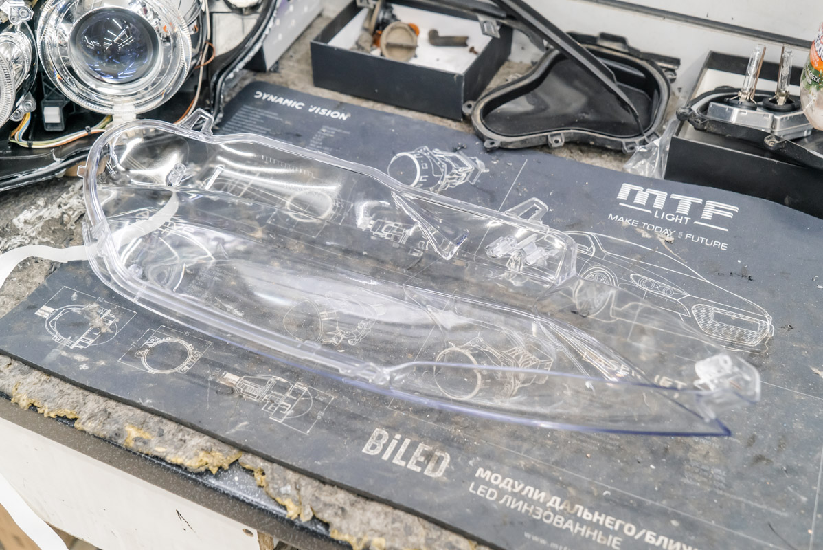 Демонтаж фар с автомобиля. Разбираем фары и удаляем старые линзы.Опираясь на более чем десятилетний опыт в сфере автосвета, мы создали биксеноновые линзы XS-Light 3R Premium, идеально отвечающие запросам водителей. В отличие от штатных композитных модулей, наши линзы полностью выполнены из металла, что исключает появление нагара и гарантирует стабильность светового потока на долгие годы. Уверенность в долговечности материала подкрепляется нашей фирменной пятилетней гарантией. Универсальный диаметр 3,0 дюйма позволяет беспрепятственно инсталлировать эти модули в оптику практически любого автомобиля. В итоге использование цельнометаллических отражателей вместо пластика становится ключевым преимуществом, обеспечивающим качественный свет без потери яркости в процессе эксплуатации. В дополнение к линзам мы установим эталонные лампы Osram Original D1S с комфортной бело-желтой температурой 4200K. Несмотря на уход бренда из России, наша компания наладила прямые поставки оригинальной продукции через параллельный импорт. Эти лампы идентичны тем, что ставятся на заводских конвейерах, и сопровождаются нашей четырехлетней гарантией. В итоге установка таких ламп позволяет сохранить аутентичные характеристики освещения фар головного света.