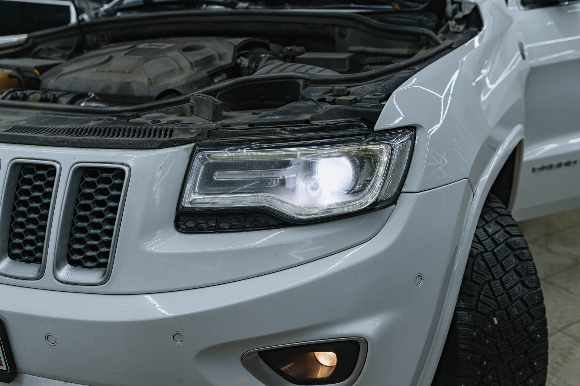 Полировка фар Джип Гранд Чероки.После модернизации фары Jeep Grand Cherokee с модулями Vision TRI-LED Ultimate Series Soft 4800K стали излучать плотный и яркий белый свет. Мощность головного света заметно усилилась, что создает максимально комфортные условия для ночных поездок, гарантируя водителю отличную видимость и безопасность. Помимо функциональных улучшений, автомобиль заметно преобразился внешне: яркий белый свет фар придал транспортному средству более солидный и эстетичный вид, освежив экстерьер.