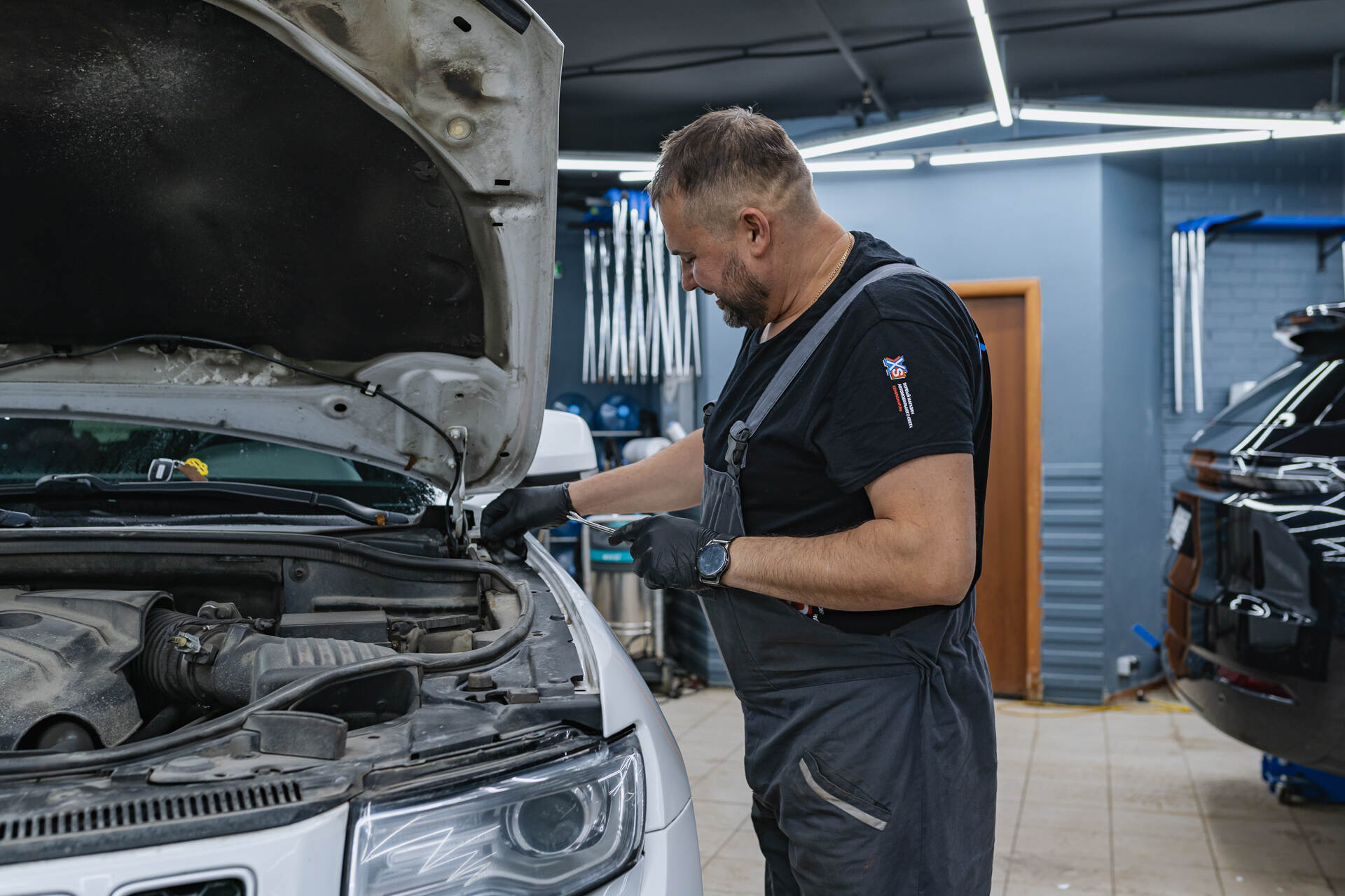 Чистка стекол фар изнутри и герметизация фар.Замена линз на Джип Гранд Чероки — трудоемкий процесс, занимающий около суток из-за «неразборной» конструкции фар. В отличие от стандартной оптики, здесь используется стекольный герметик, который требует применения специальной химии для разбора и четырех часов кропотливого труда на каждую фару. После вскрытия изношенные линзы заменяются на светодиодные модули Vision TRI-LED Ultimate Series Soft 4800K с помощью переходных рамок, что позволяет сохранить заводскую конструкцию без масштабных переделок посадочного места. Поскольку оригинальные стекла находились в плохом состоянии, мы отчистили их изнутри щелочным раствором от грязи, а также отполировали до блеска с внешней стороны. Далее фары герметизируются бутиловым герметиком и автомобиль собирается, а по завершении монтажа фар на место была выполнена финальная регулировка светового потока по прибору. Такой комплексный подход гарантирует идеально ровную светотеневую границу и безупречную видимость на дороге.
