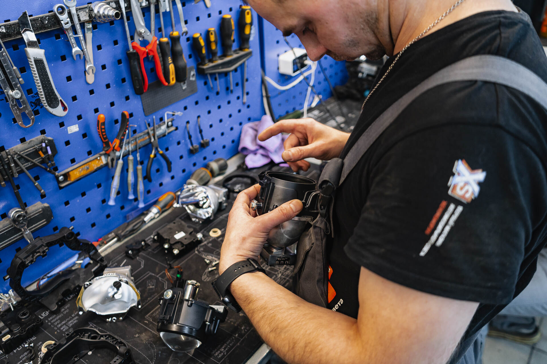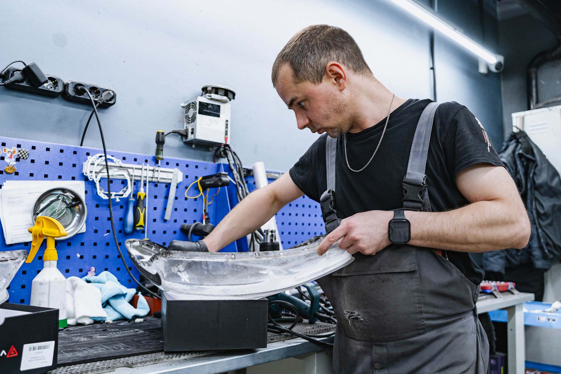 Регулировка нового автосвета по прибору.Дополнительно мы привели в идеальное состояние и стекла фар: изнутри очистили их от загрязнений щелочным составом, а снаружи отполировали до зеркального блеска абразивными пастами, которые эффективно устраняют помутнения и мелкие повреждения поверхностей. Завершающий этап работ включает герметизацию фар с новыми отражателями бутиловым герметиком, их установку на автомобиль и точную регулировку оптики по прибору, тем самым мы добиваемся идеально ровной светотеневой границы. На этом работа завершена — можно оценивать результат.