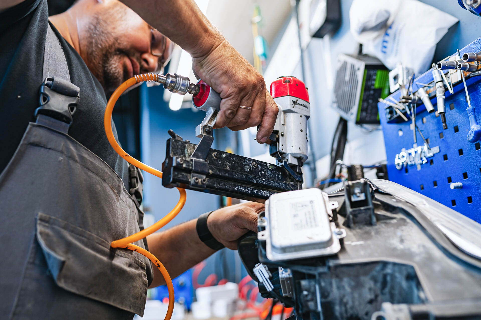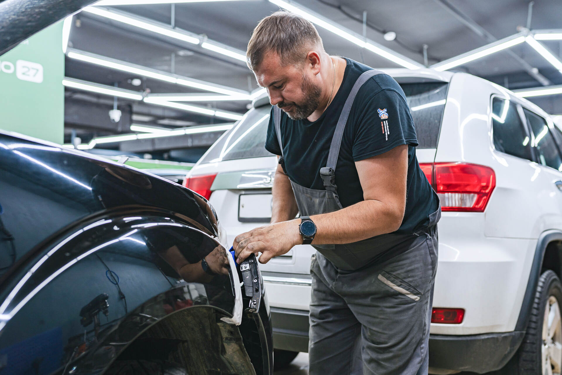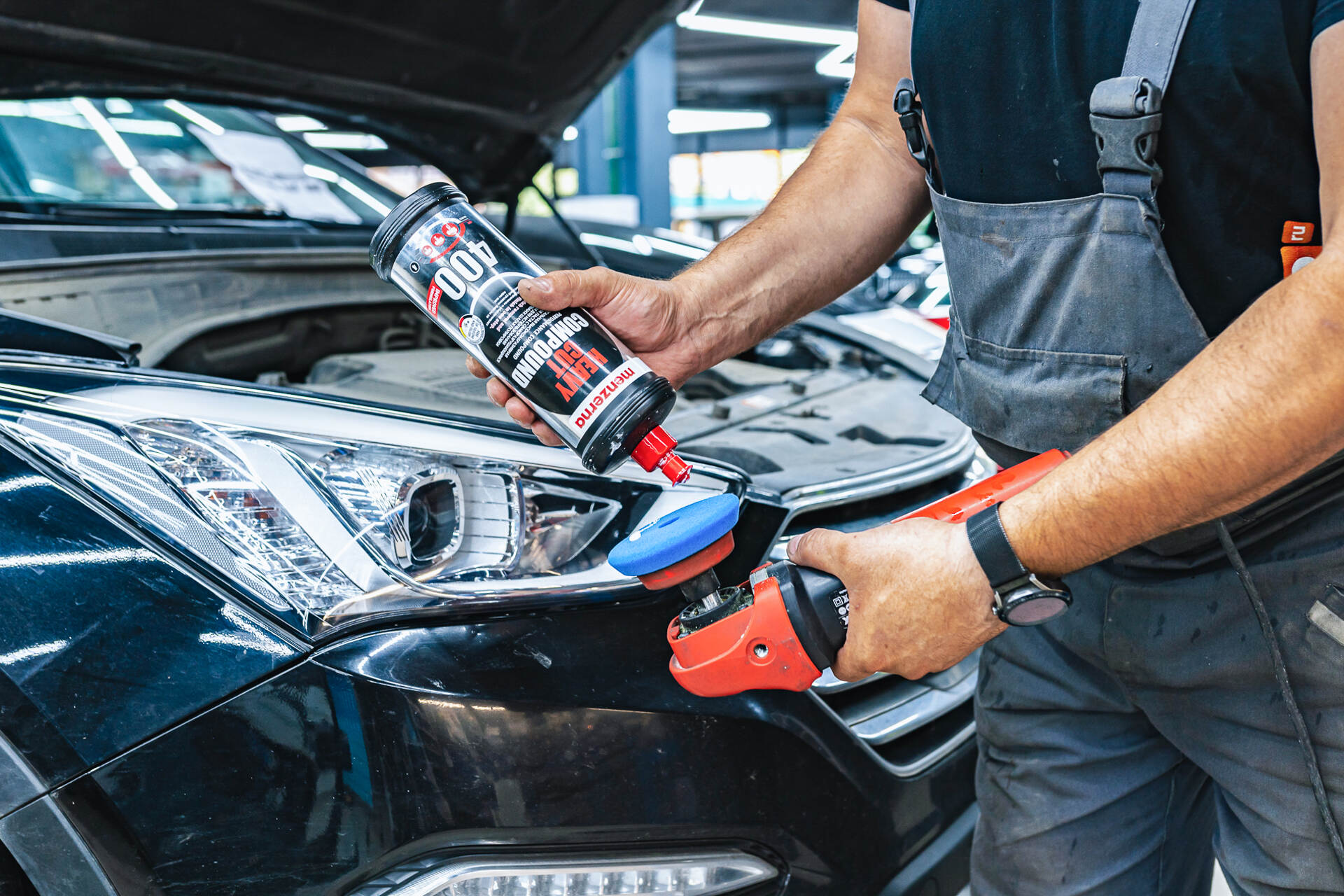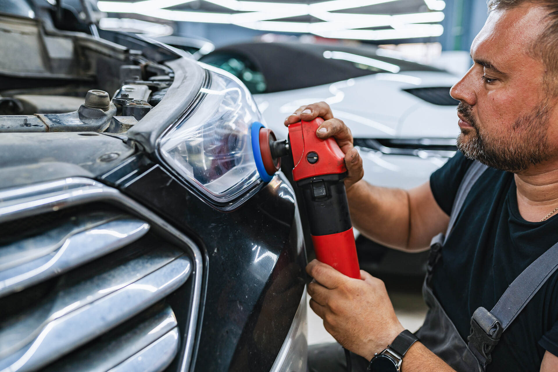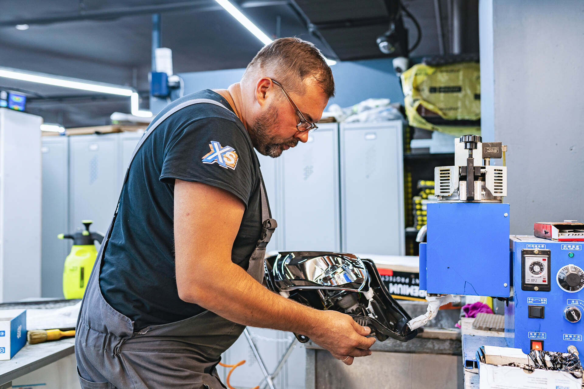 Полируем стекла фар.В нашем автосервисе Вы можете заказать не только замену ламп, но и произвести замену или ремонт фар и отдельных элементов автомобильного освещения, а также установить парктроники или наклеить тонировочную пленку быстро, качественно и недорого – обращайтесь!