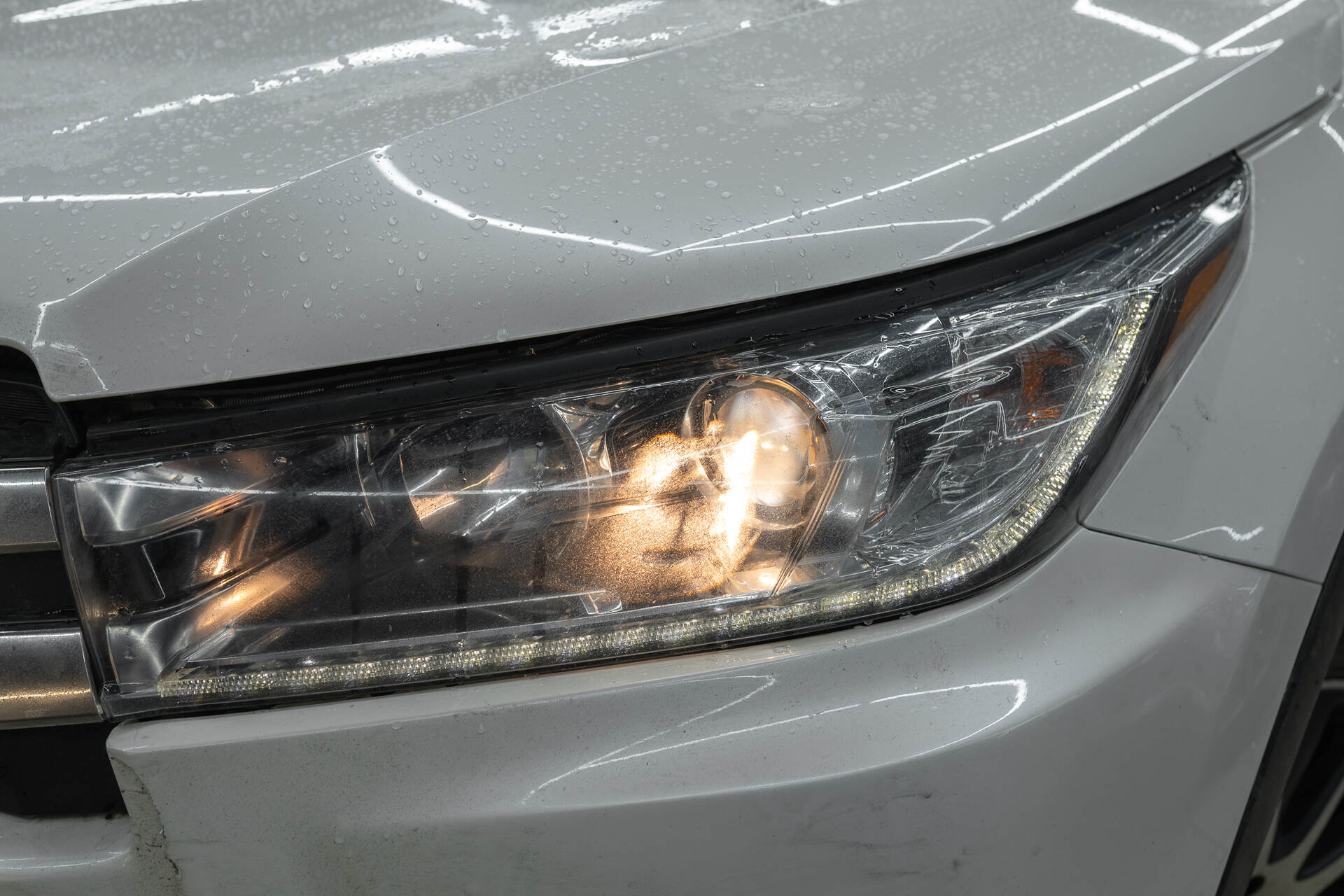 Чистим стекла и герметизируем фары.Результат модернизации Toyota Highlander с линзами Vision Avantgarde наглядно подтверждает эффективность обновления: теперь фары генерируют интенсивный белый световой поток, гарантирующий максимальный комфорт и безопасность в ночных поездках. И хоть итоговых фотографий светотеневой границы у нас нет, тем не менее, огромное количество других работ в нашей базе говорит о достойном результате. Помимо технических преимуществ новых линз, мы уделили внимание эстетике — яркое свечение LED-модулей эффектно смотрится на фоне белого кузова, придавая автомобилю современный и солидный вид. Профессиональный тюнинг головного света позволил достичь идеального баланса между безупречной видимостью на дороге и обновленным стилем транспортного средства.