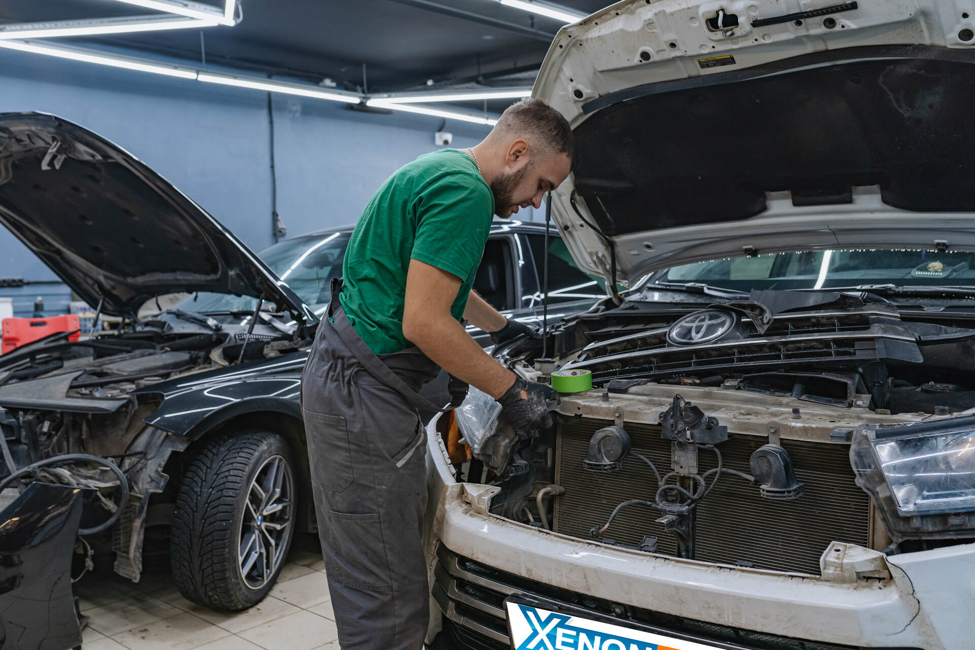 Свет фар и вид автомобиля после работы.В нашем автосервисе Вы можете заказать не только замену ламп, но и произвести замену или ремонт фар и отдельных элементов автомобильного освещения, а также установить парктроники или наклеить тонировочную пленку быстро, качественно и недорого – обращайтесь!