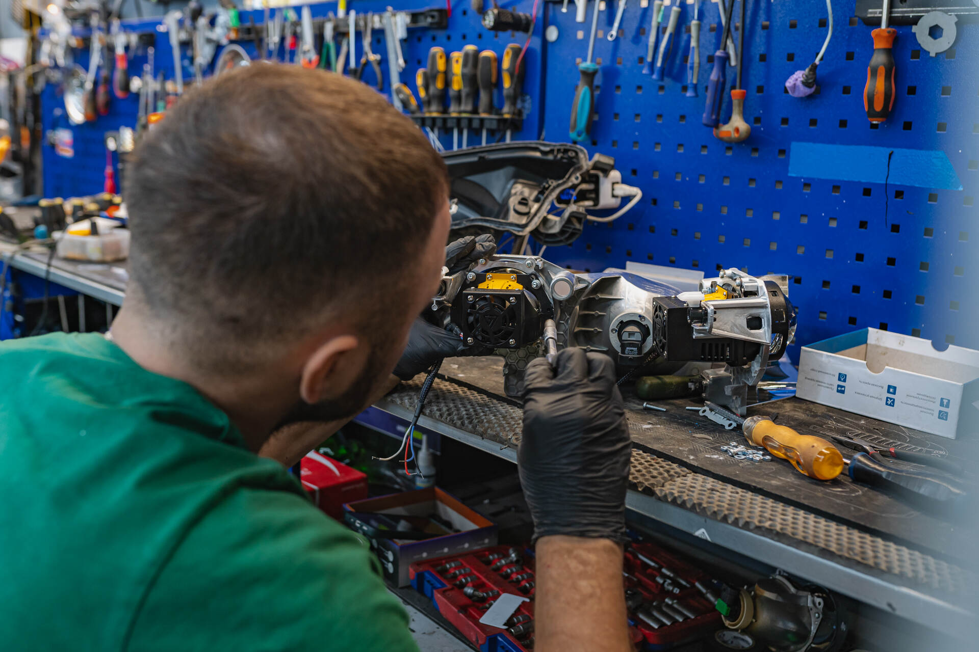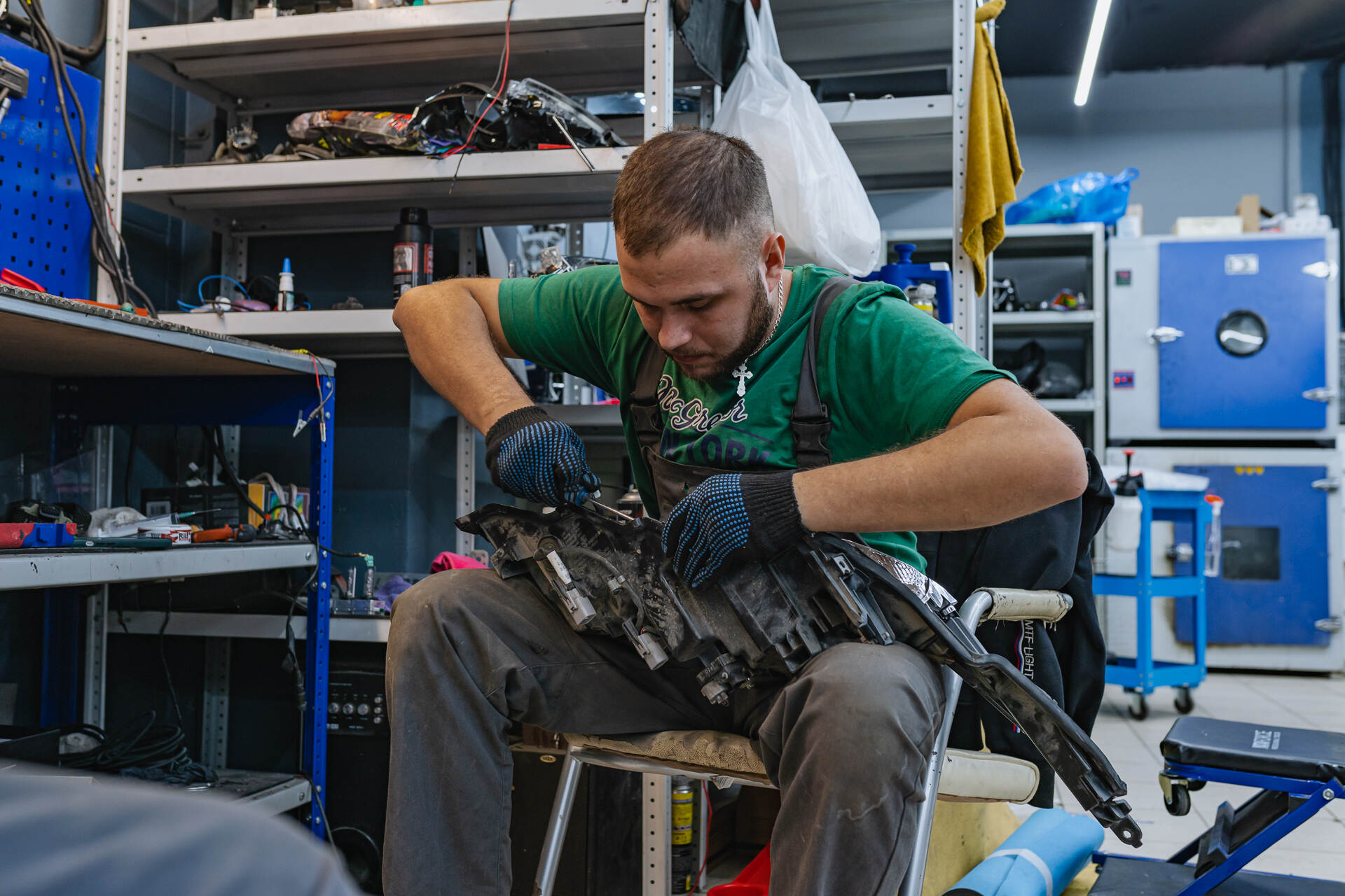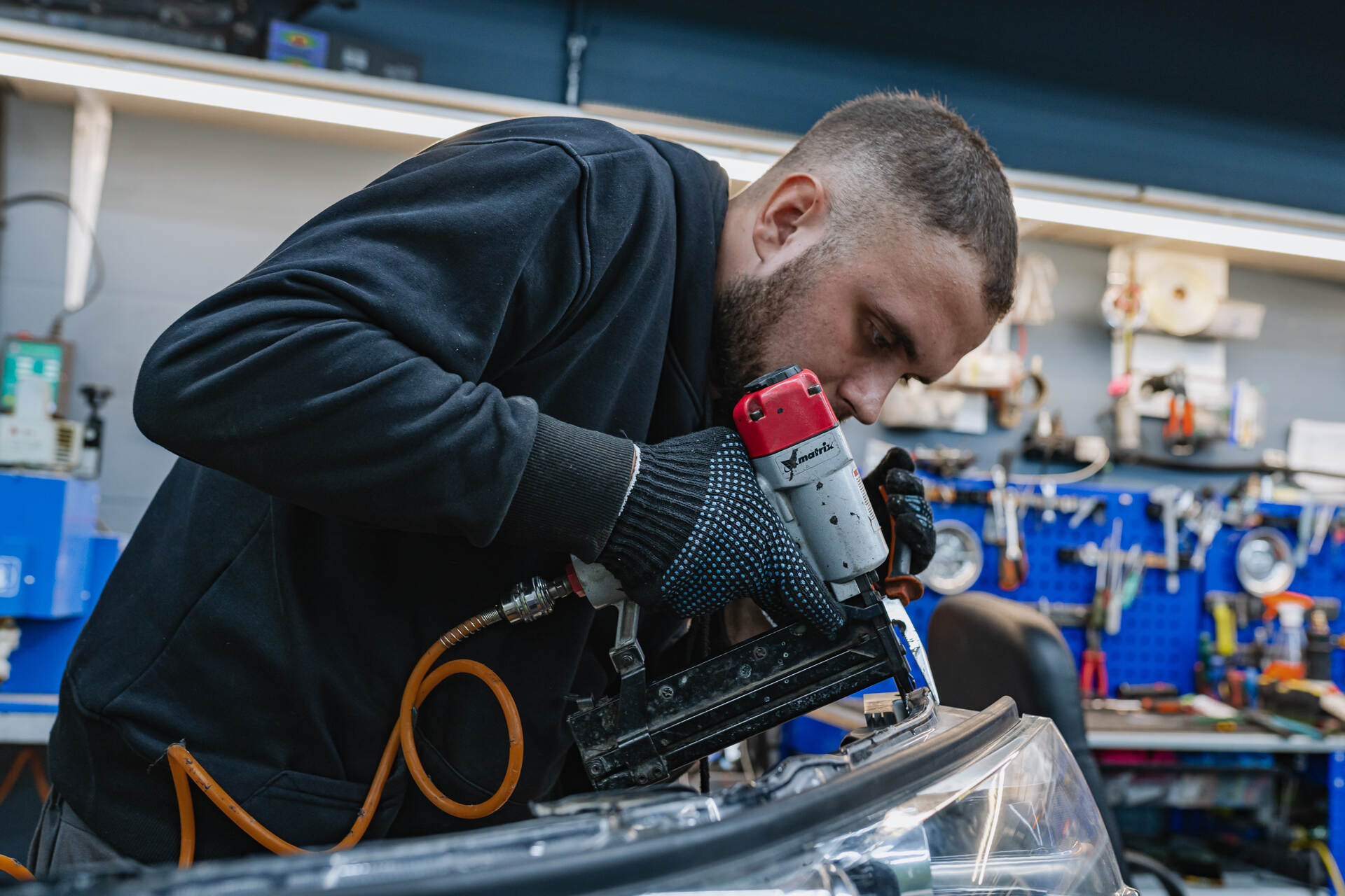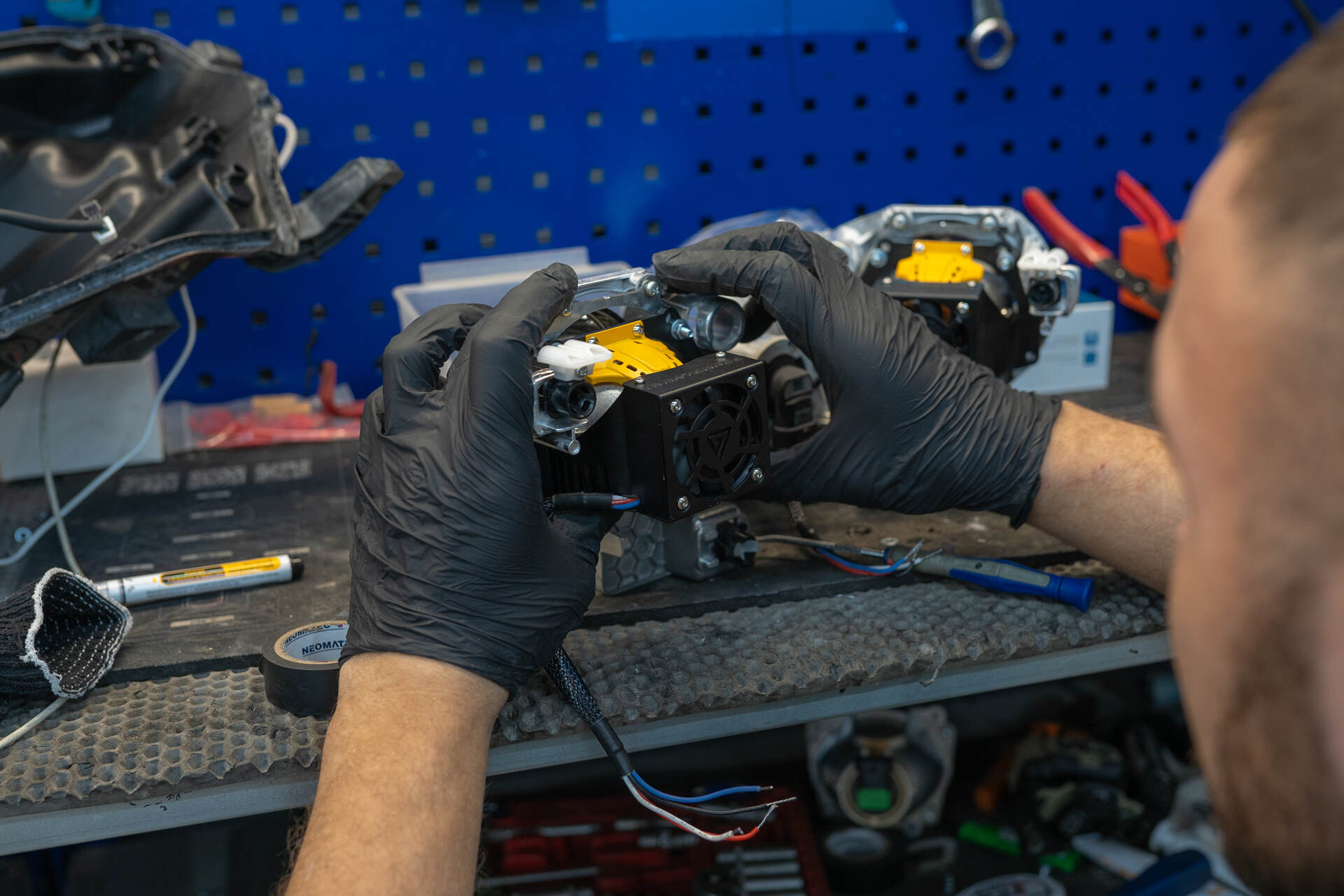 Демонтаж и разбор фар.Замена линз Тойота Хайлендер начинается с демонтажа бампера и извлечения фар, которые направляются в промышленную печь для их дальнейшего разбора. Под воздействием высокой температуры заводской герметик размягчается, позволяя аккуратно отделить стекла от корпусов. После демонтажа изношенных ксеноновых модулей мы устанавливаем светодиодные линзы Vision Avantgarde, используя специальные переходные рамки для точной фиксации. Обычно весь процесс занимает один рабочий день, так как замена линз у нас отработана до автоматизма, особенно если говорить про фары на температурном (как в этот раз), а не на стекольном герметике. Налаженные этапы тюнинга головного света позволяют мастерам работать максимально оперативно, сохраняя неизменно высокий уровень качества сборки и настройки обновленного автосвета.