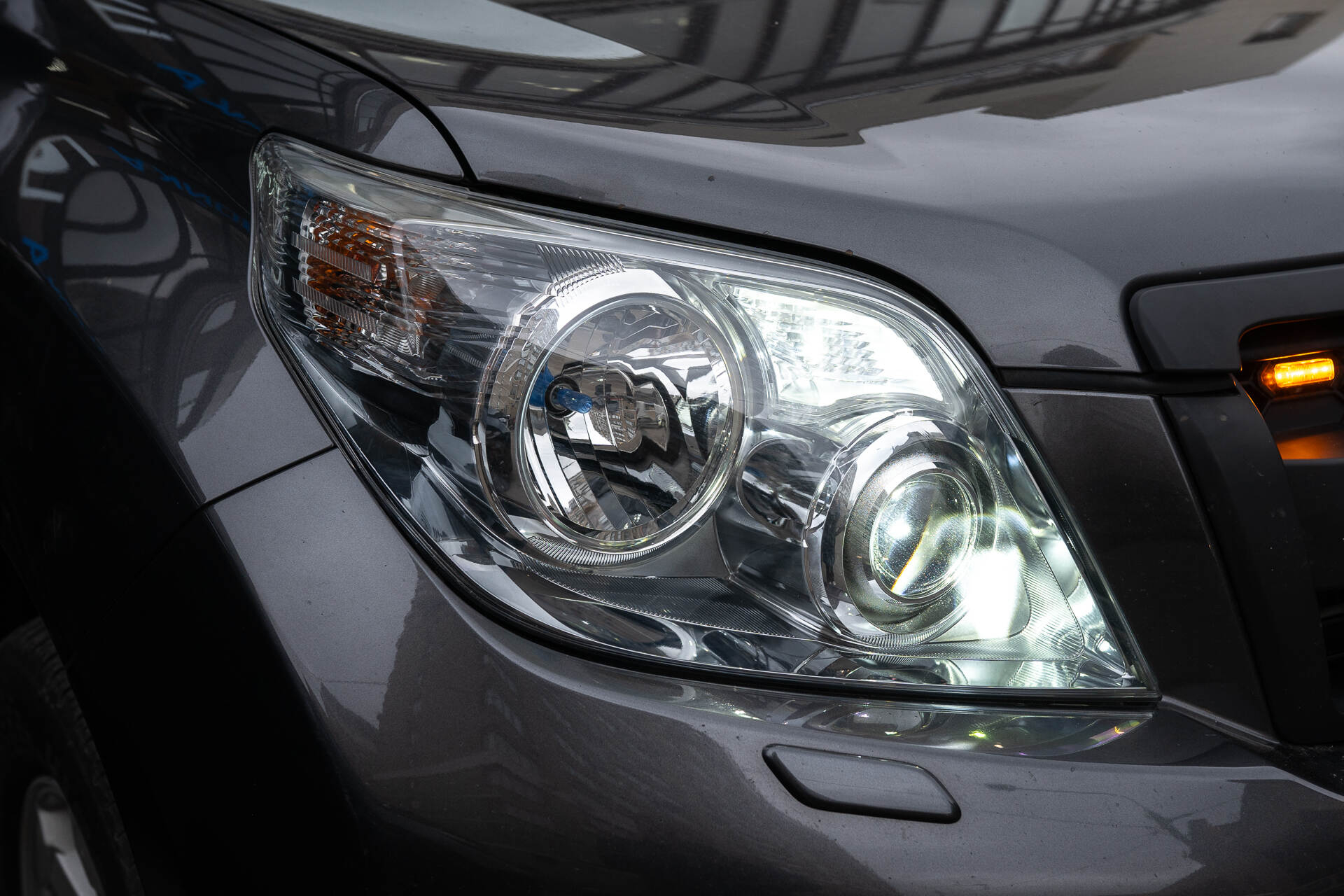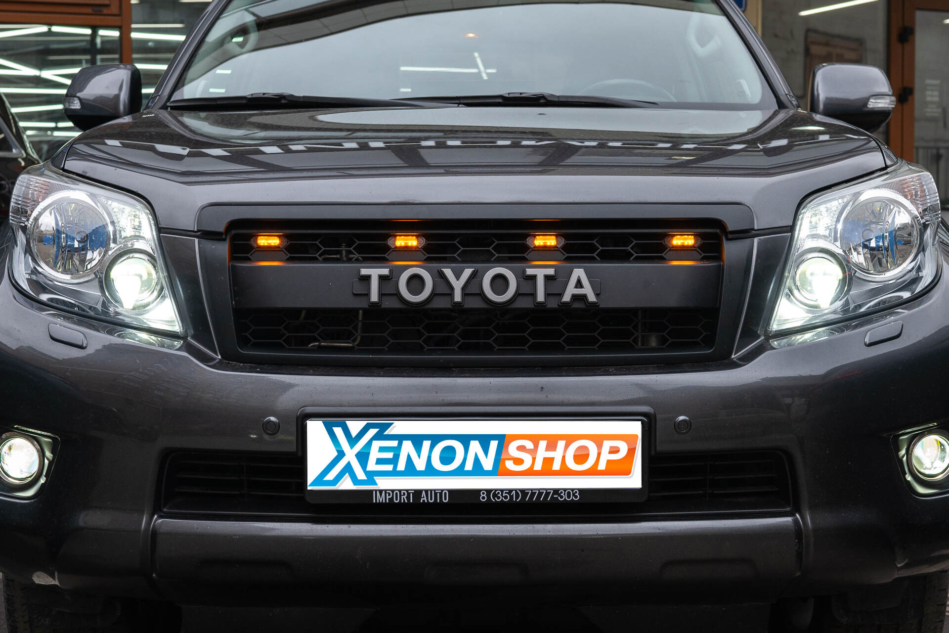 Итоговый свет фар с новыми линзами.Оценим полученный результат: итоговые снимки наглядно подтверждают эффективность светодиодных линз Vision Avantgarde в фарах Toyota Land Cruiser Prado 150 (2010). Обновленный головной свет гарантирует превосходную видимость в темное время суток, качественно освещая дорожное полотно перед автомобилем. Эстетическая составляющая также впечатляет: чистый белый свет эффектно контрастирует с серым кузовом, создавая гармоничный визуальный образ. Поскольку от состояния головного света напрямую зависит безопасность водителя и его пассажиров, мы рекомендуем не откладывать тюнинг головного света, и не дожидаться критического ухудшения освещения.