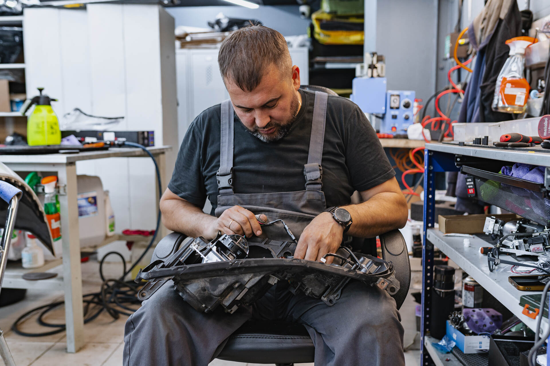 Полируем фары и регулируем новый автосвет.Учитывая внушительный пробег автомобиля, мы провели комплексное обновление стекол: внутренние поверхности были очищены от налета специальными щелочными составами, а внешние — отполированы абразивами для удаления царапин и потертостей. На финальном этапе фары с новыми линзами герметизируются бутиловым герметиком и возвращаются на автомобиль. Завершается процесс точной настройкой светового потока по прибору, после чего полностью обновленная оптика готова к эксплуатации.