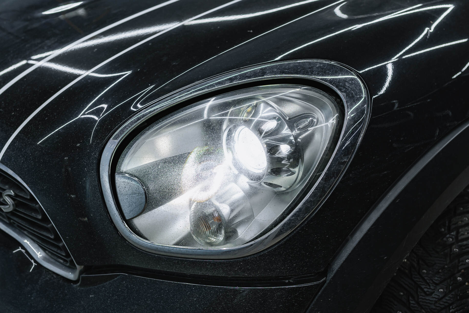 В наш автосервис поступил маленький автомобиль Mini Cooper (2013) с выгоревшим головным светом, что является типичной проблемой для возрастной ксеноновой оптики. Поскольку заводские линзы преимущественно состоят из пластиковых компонентов, высокая температура горения ксенона со временем неизбежно приводит к их выгоранию. Образовавшийся на отражателях нагар блокирует световой поток, превращая некогда яркое освещение в едва заметную линию. Нашей задачей стала замена деградировавшей штатной оптики на современные LED-модули Vision TRI-LED Ultimate Series Soft 4800K. Такой тюнинг головного света позволяет не только восстановить параметры освещения, но и добиться существенного прироста яркости, обеспечив качественную видимость на дороге.