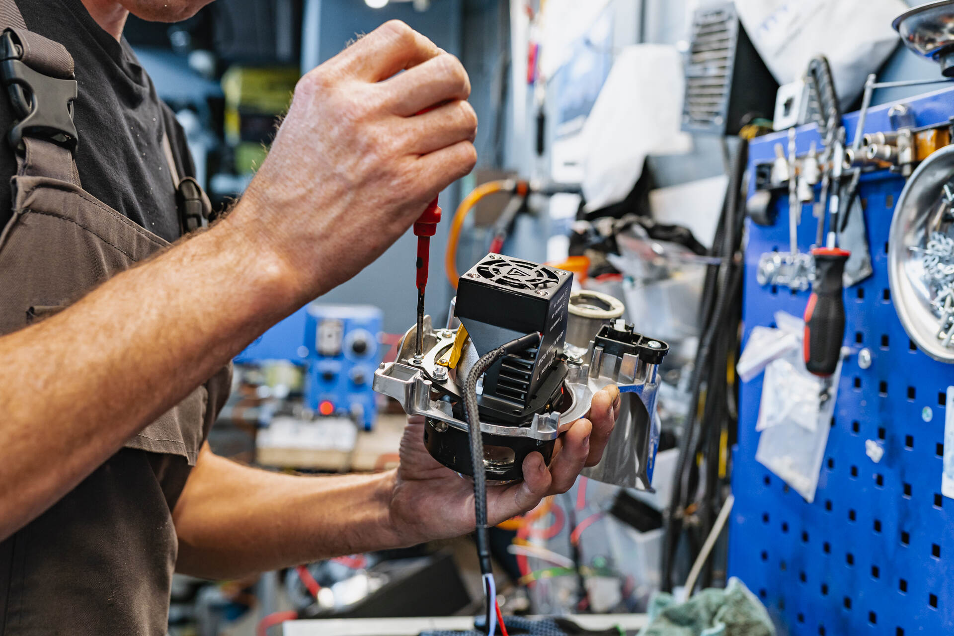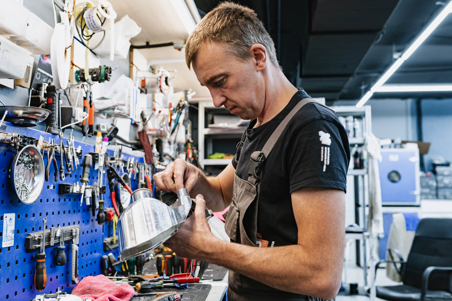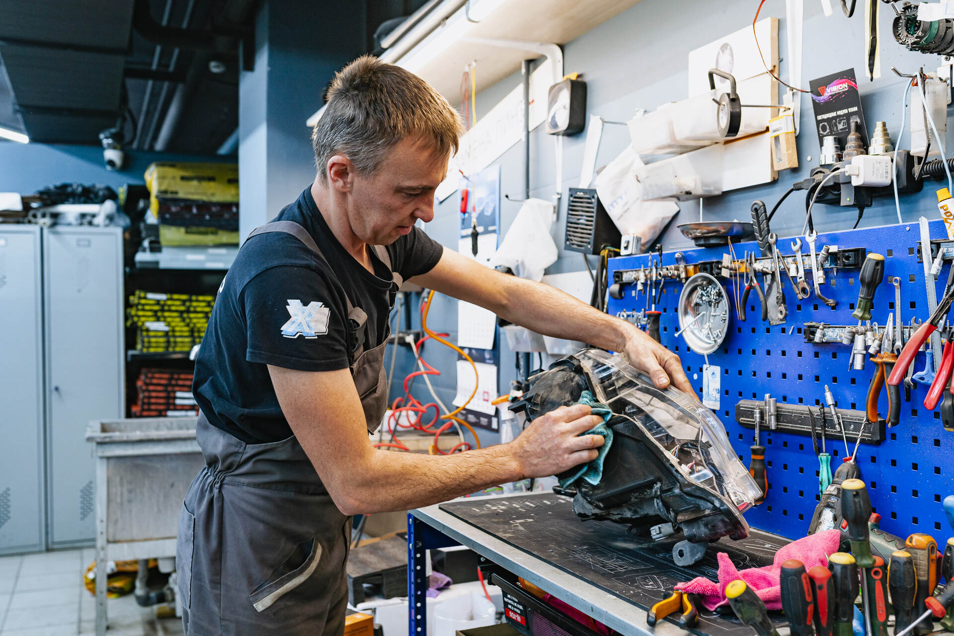 Чистим стекла фар, герметизируем фары и собираем автомобиль.Поскольку штатные стекла фар имели значительное помутнение, мы выполнили их внутреннюю очистку щелочным составом и внешнюю полировку абразивными пастами, что значительно улучшило светопропускание оптики. После установки линз фары тщательно герметизируются бутиловым герметиком, и после полимеризации герметика автомобиль собирается. Завершающим этапом становится точная регулировка светодиодных линз Vision Avantgarde с по прибору, обеспечивая тем самым оптимальное распределение светового пучка на дороге.