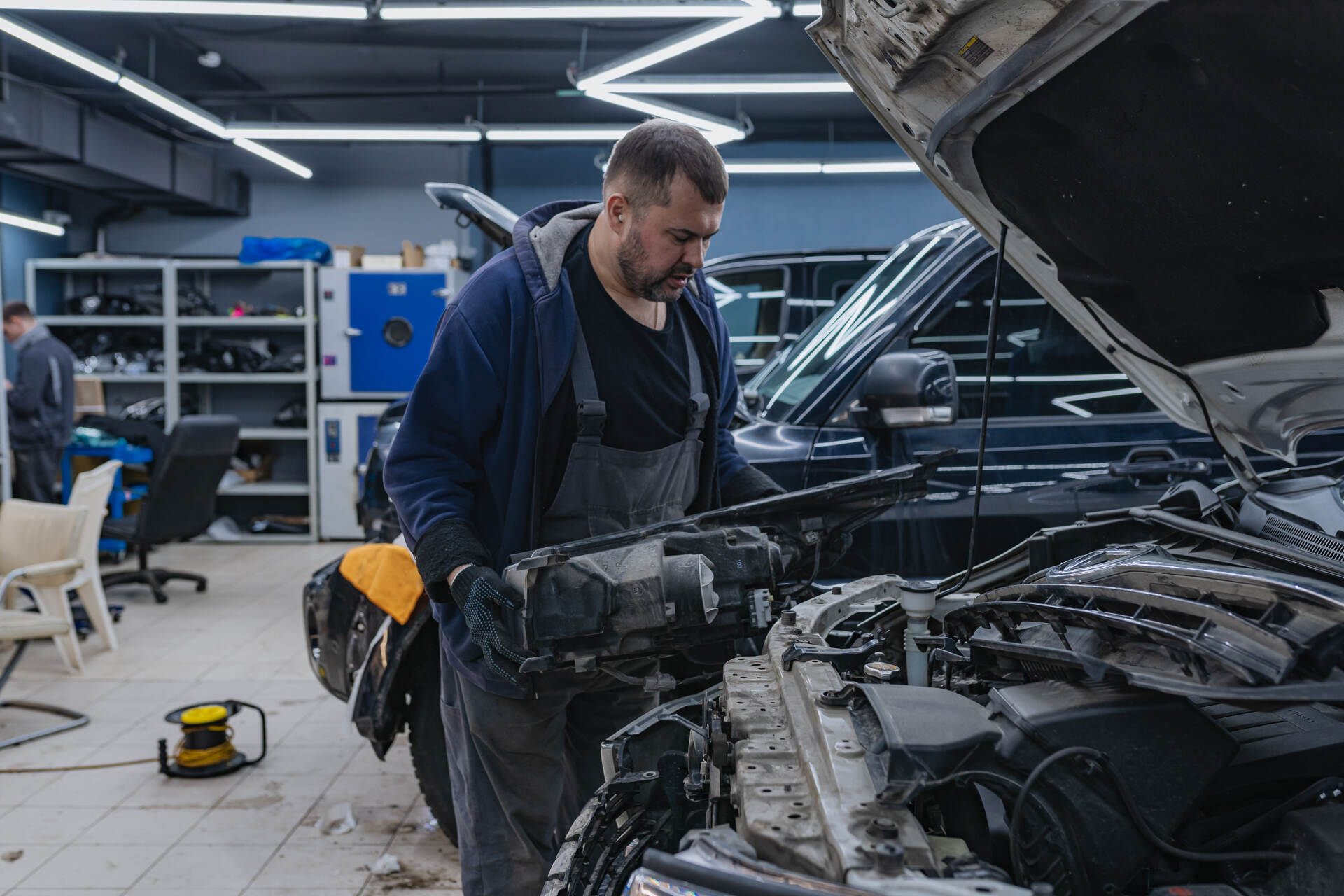 Регулируем свет фар до их герметизации. Собираем фары и полируем их стёкла.В процессе работы мы тщательно очистили внутреннюю поверхность стекол щелочью, что крайне важно для автомобилей с большим пробегом – эта процедура эффективно устраняет многолетние наслоения грязи, восстанавливая прозрачность и гарантируя прохождение светового потока от новых линз без искажений. После замены герметика и окончательной сборки автомобиля мы приступаем к финишным этапам. Мастера полируют внешнюю сторону стекол для удаления мелких дефектов и проводят точную регулировку фар по прибору, добиваясь идеально ровной светотеневой границы для безопасного и комфортного вождения.
