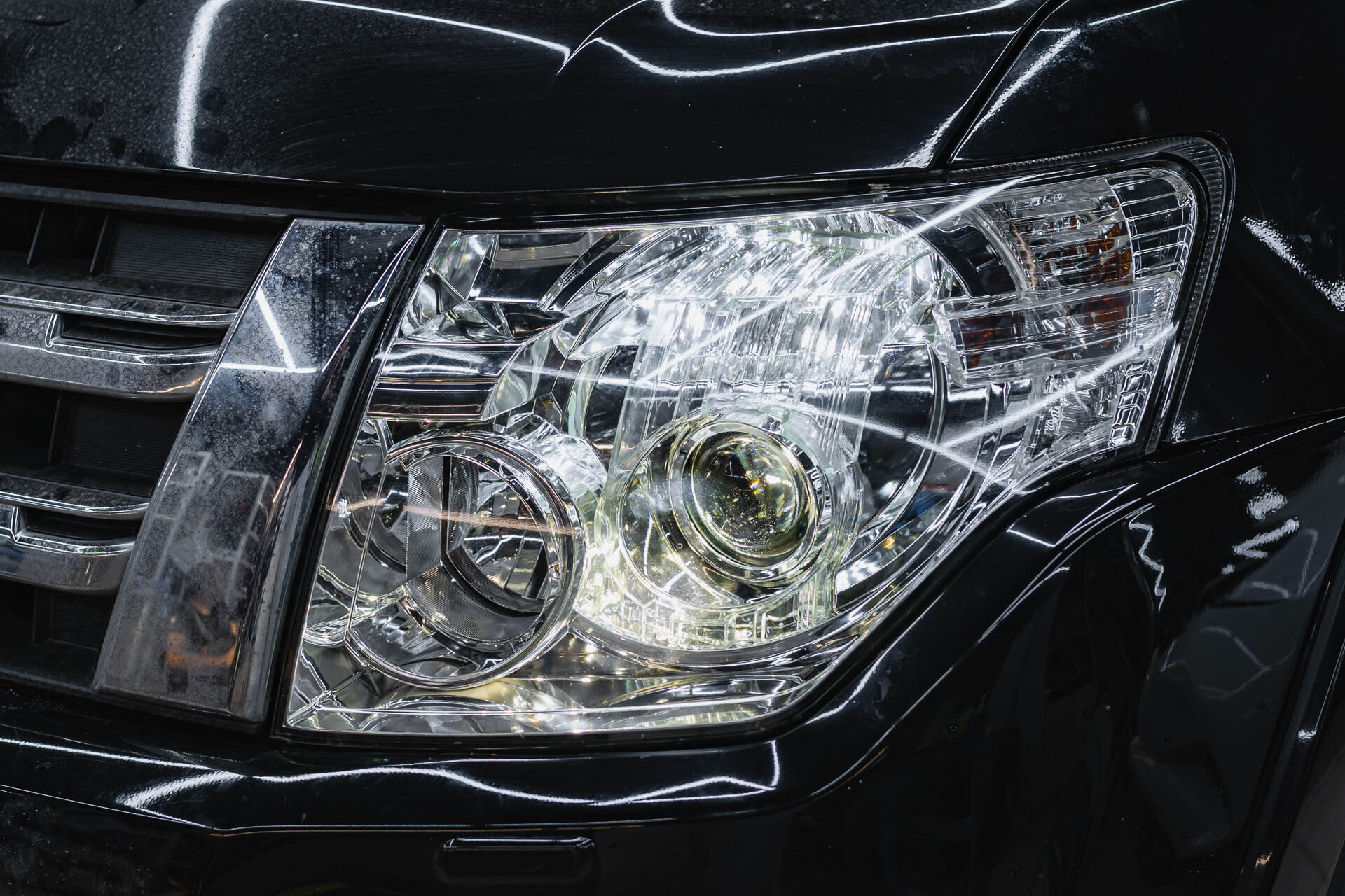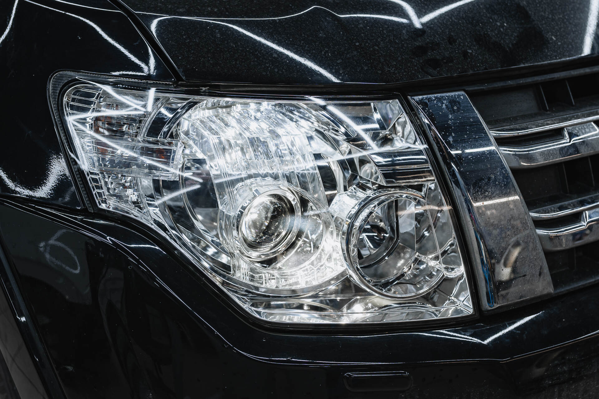 Если качество головного света вашего автомобиля заметно снизилось, профессиональный тюнинг оптики станет верным решением. Владелец Mitsubishi Pajero IV столкнулся с типичной проблемой: выгоранием штатных ксеноновых ламп и линз. В момент обращения диагностика показала, что световой поток фар стал очень слабым – это происходит из-за того, что пластиковые заводские модули не выдерживают высокой температуры ксенона и покрываются нагаром. Как правило, деградация отражателей становится критической при пробеге от 70 до 100 тысяч километров, требуя полной замены компонентов.