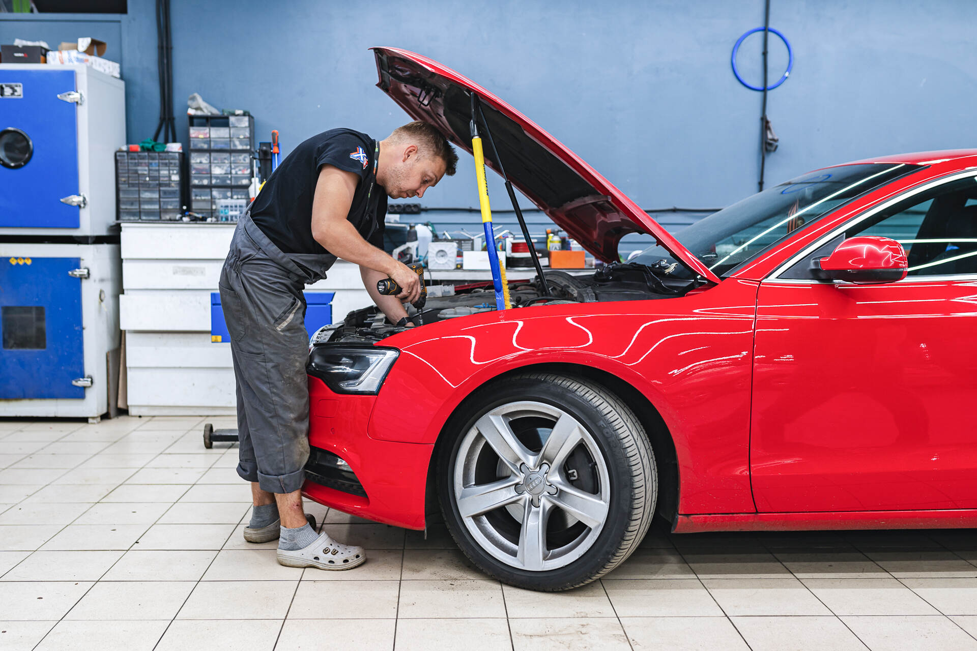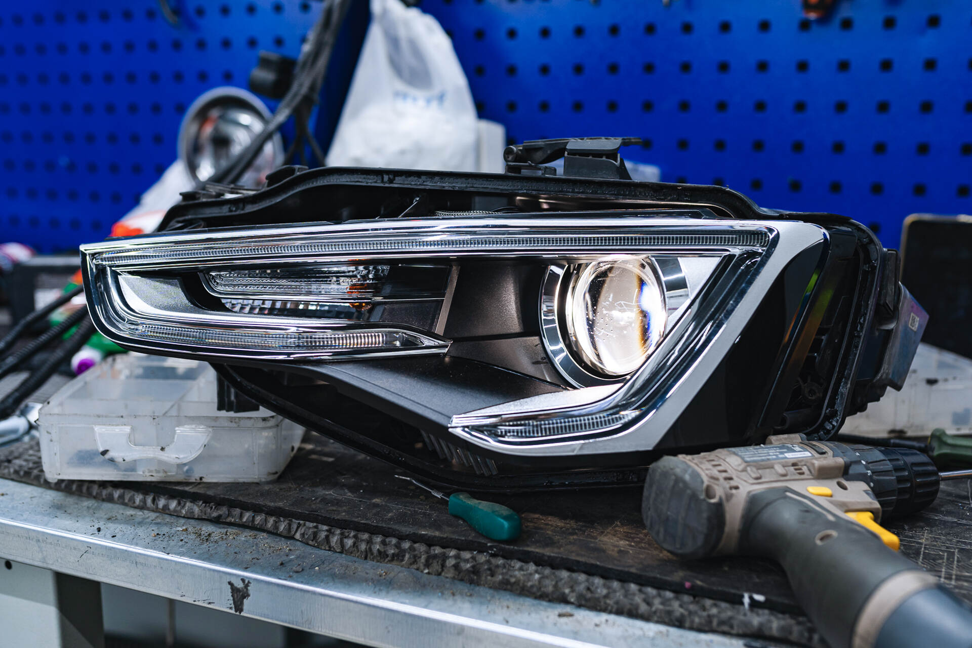 Если вы заметили запотевание одной или обеих фар на своем автомобиле, лучше сразу заняться этой проблемой. Постепенно конденсат внутри фары будет накапливаться, и в итоге влага может попасть на блоки управления головным светом, что приведет к их поломке. Тогда ремонт усложнится и станет дороже: придется не только устранять запотевание, но и менять электронные блоки розжига. Однако если влага появилась недавно, есть вероятность решить проблему одной лишь перегерметизацией. В этой статье рассмотрим случай с автомобилем Audi A5, у которого возникло незначительное запотевание левой фары — наша задача состоит в том, чтобы определить и устранить причину его возникновения.