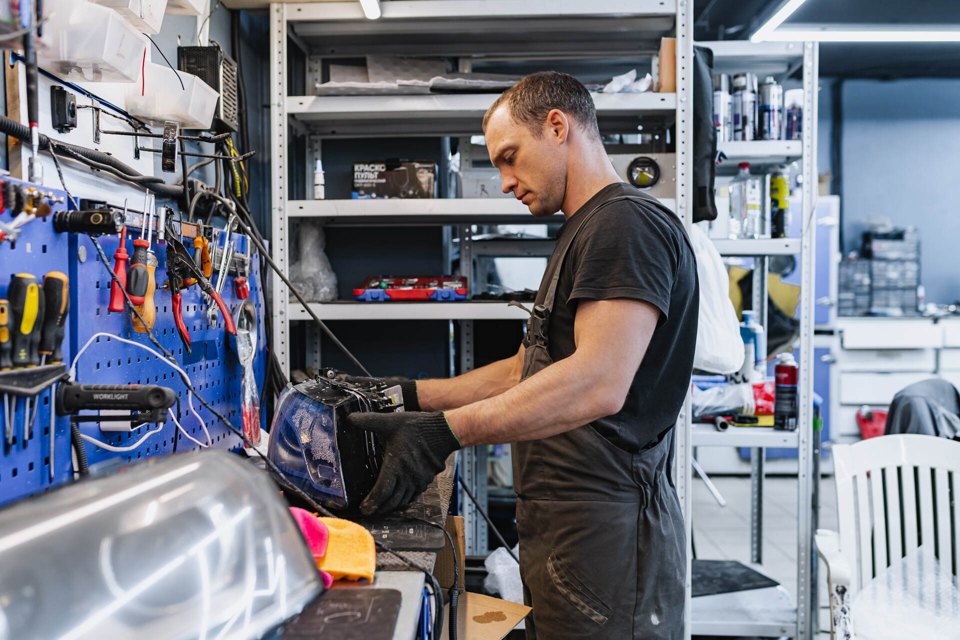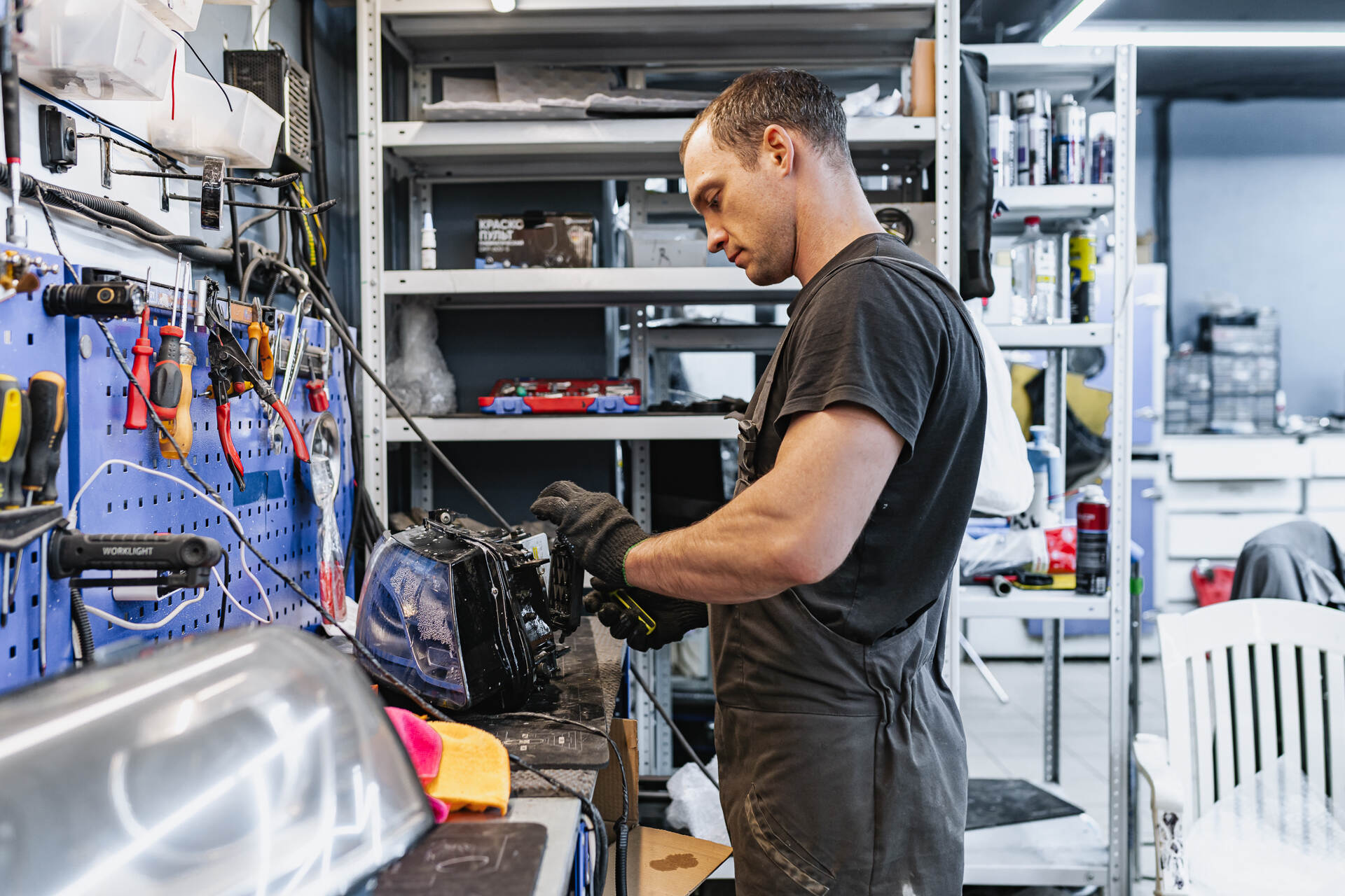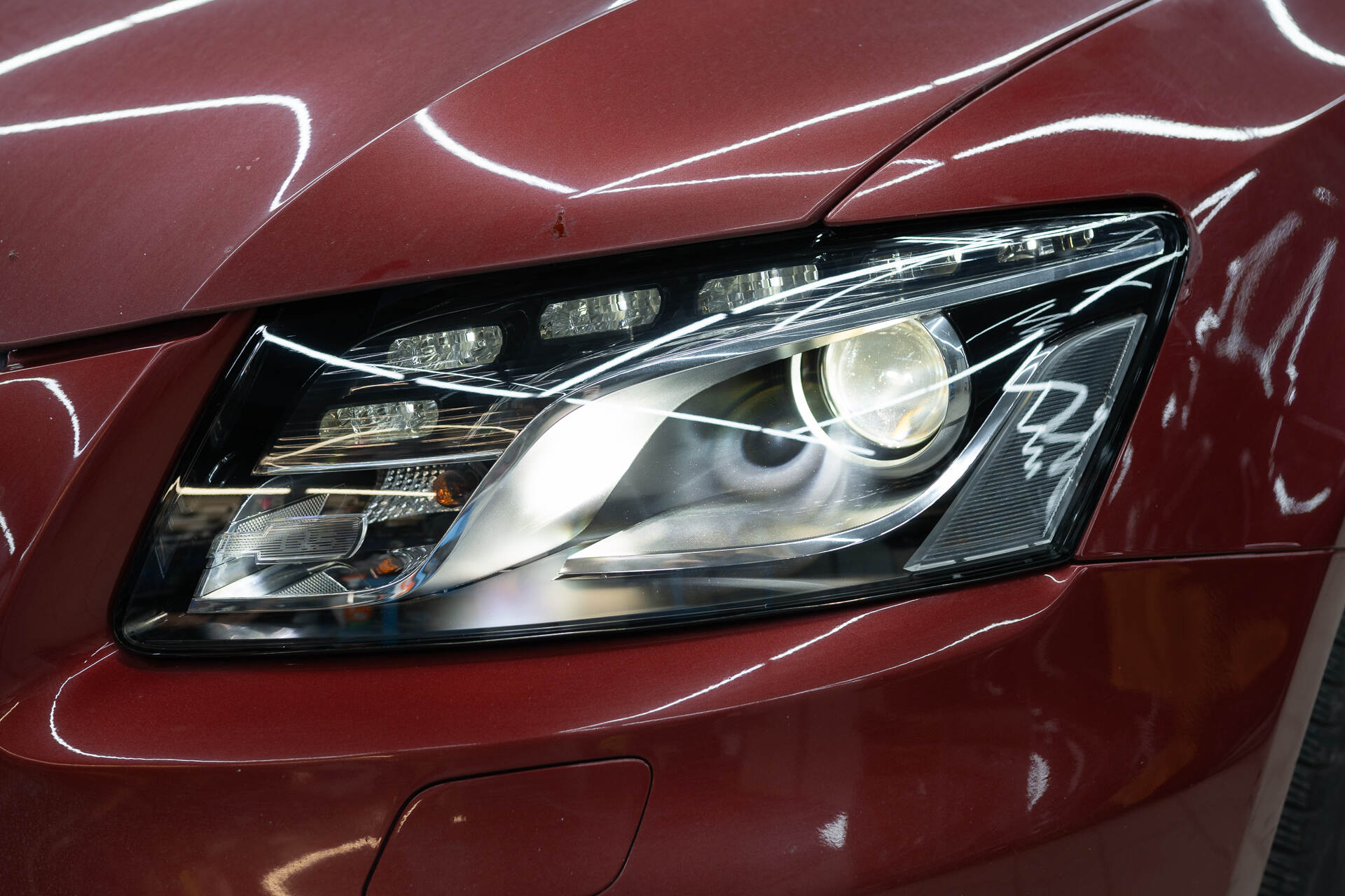 Разбираем фары. Собираем автомобиль.Для замены стекол фар Ауди КУ5 нашим специалистам требуется демонтировать переднюю часть автомобиля, после чего снятые фары отправляются на разборку. Поскольку производителем используется специальный стекольный герметик, такая оптика изначально считается неразборной, и работа над каждой фарой занимает около четырех часов. После аккуратной разборки мы полностью удаляем остатки старого герметика из посадочных пазов, затем наносим новый бутиловый уплотнитель и устанавливаем новые стекла, обеспечивая идеальную герметизацию. В нашем интернет-магазине всегда имеются в наличии стекла для популярных моделей авто, а для редких марок мы оперативно найдем необходимые детали под заказ.