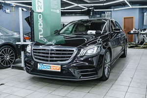 Поликарбонатное стекло для левой фары Mercedes S W222 рест. 2017-2020.