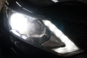 Установка на Ниссан Кашкай / Nissan Qashqai светодиодных ламп MTF-Light Night Assistant H11